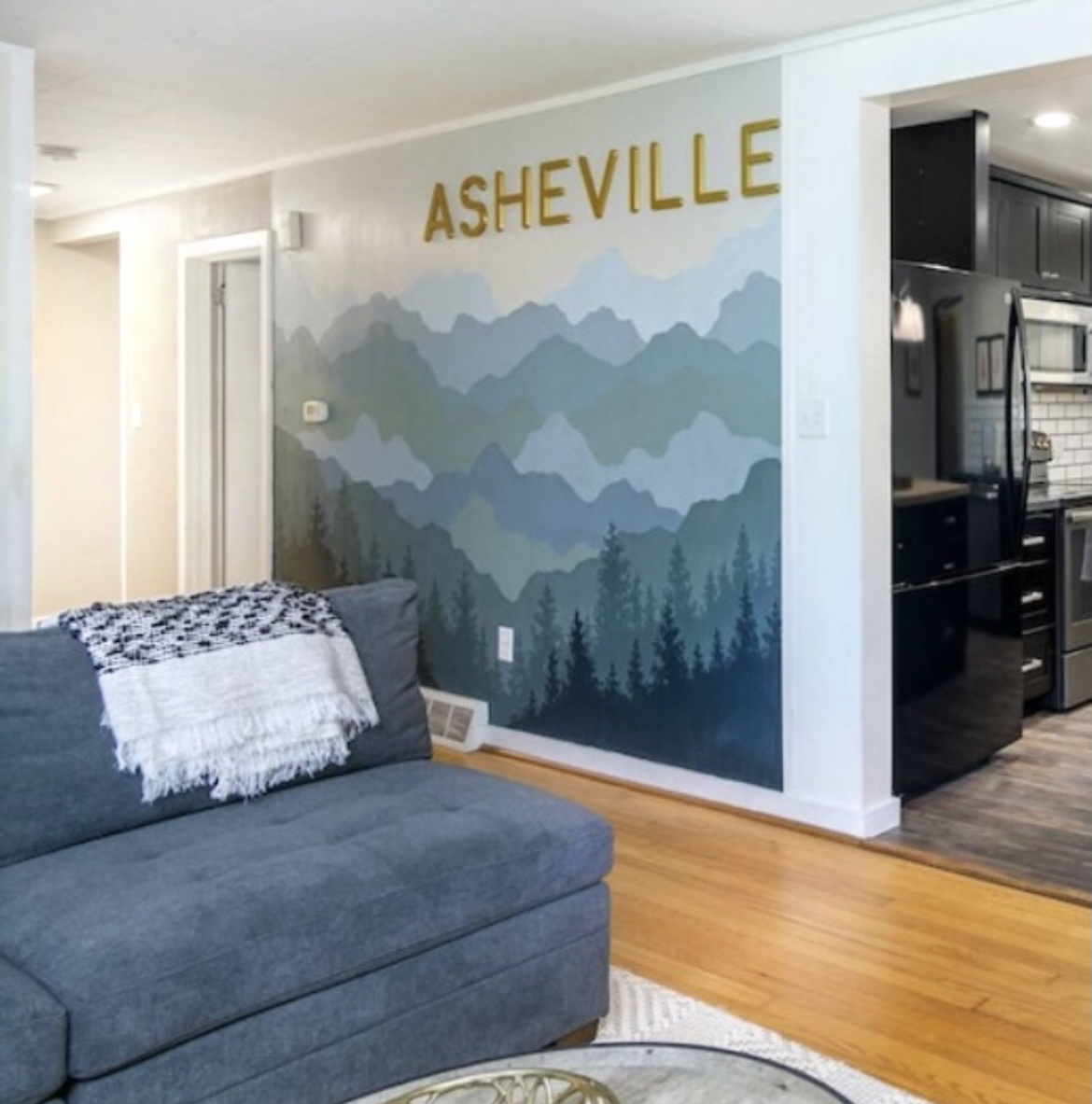 My art varies (depending on what the client wants) but I enjoy the use of pattern and texture in my murals inspired by fabrics and art I've seen in my travels around the world. I enjoy fusing realistic elements with more geometric concepts or strong patterns.