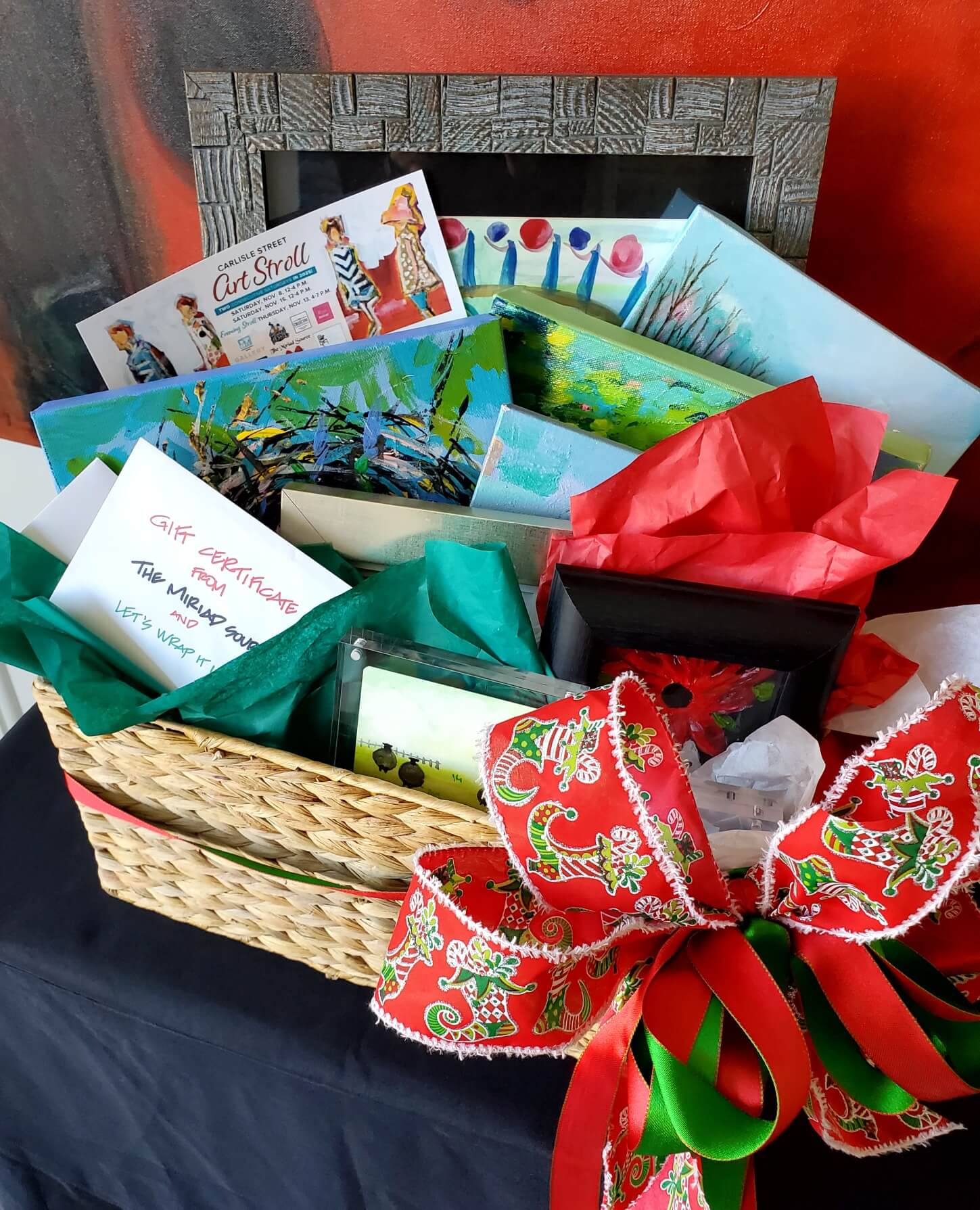TWO Consecutive Saturdays in 2025! Unprecedented in Columbia – A Holiday Art Stroll on two consecutive Saturdays and a Thursday evening, an evening which pays homage to how this Capital City tradition began… One night in November, over a decade ago, painters in communal studios on Carlisle Street adorned their canvases and gallery walls, invited friends & family to gather and neighborhood mantels were transformed overnight. Hence the lore of the Carlisle Street District began, a single block which has grown from three to eight creative small businesses. This year’s 3-day format adapts to Columbia residents and day-trippers alike by offering alternative shopping days and hours to fit into busy holiday and work schedules. “This year, original paintings by 40 Columbia artists may be explored on your tour of 8 participating businesses, which are 100% locally woman owned. Collectively, our complementary businesses readily accommodate both residential and commercial design needs.” --OTM Gallery Owner & Art Stroll Organizer Julie Coffey NEW! Enter our GALLERY WALL GIVEAWAY, a gift basket loaded with original paintings and gift certificates donated by Carlisle Street artists and businesses. Inquire in person at any participating business. Must be present to enter. Winner will be announced Mon., Nov. 17. Participating businesses: Majure Decor, Over the Mantel (OTM) Gallery, Viridian Gallery & Studio, The Collective, The Drapery Shop by Jodi Jenkins Designs, The Mad Platter, The Miriad Source & Let’s Wrap it Up!