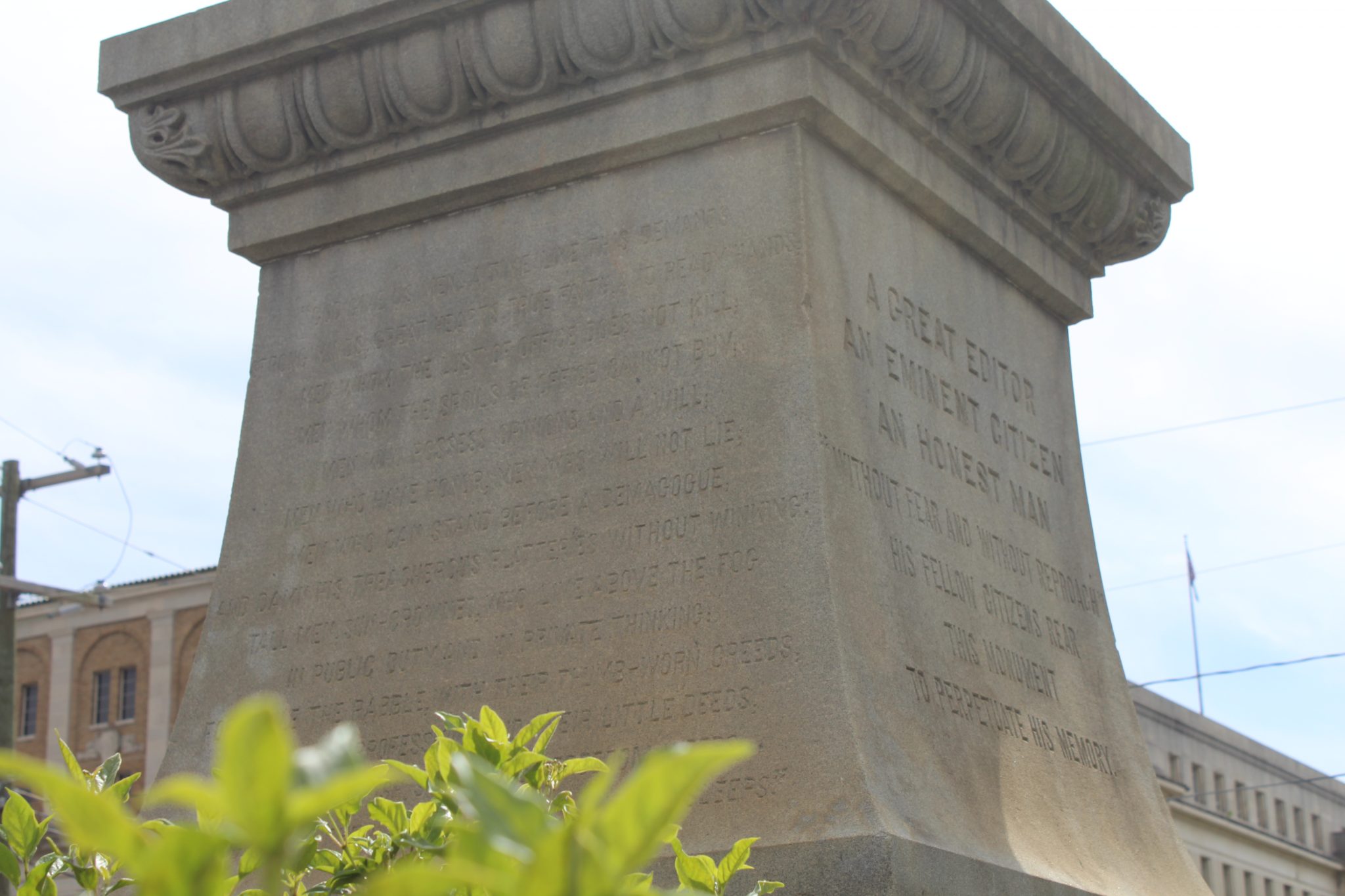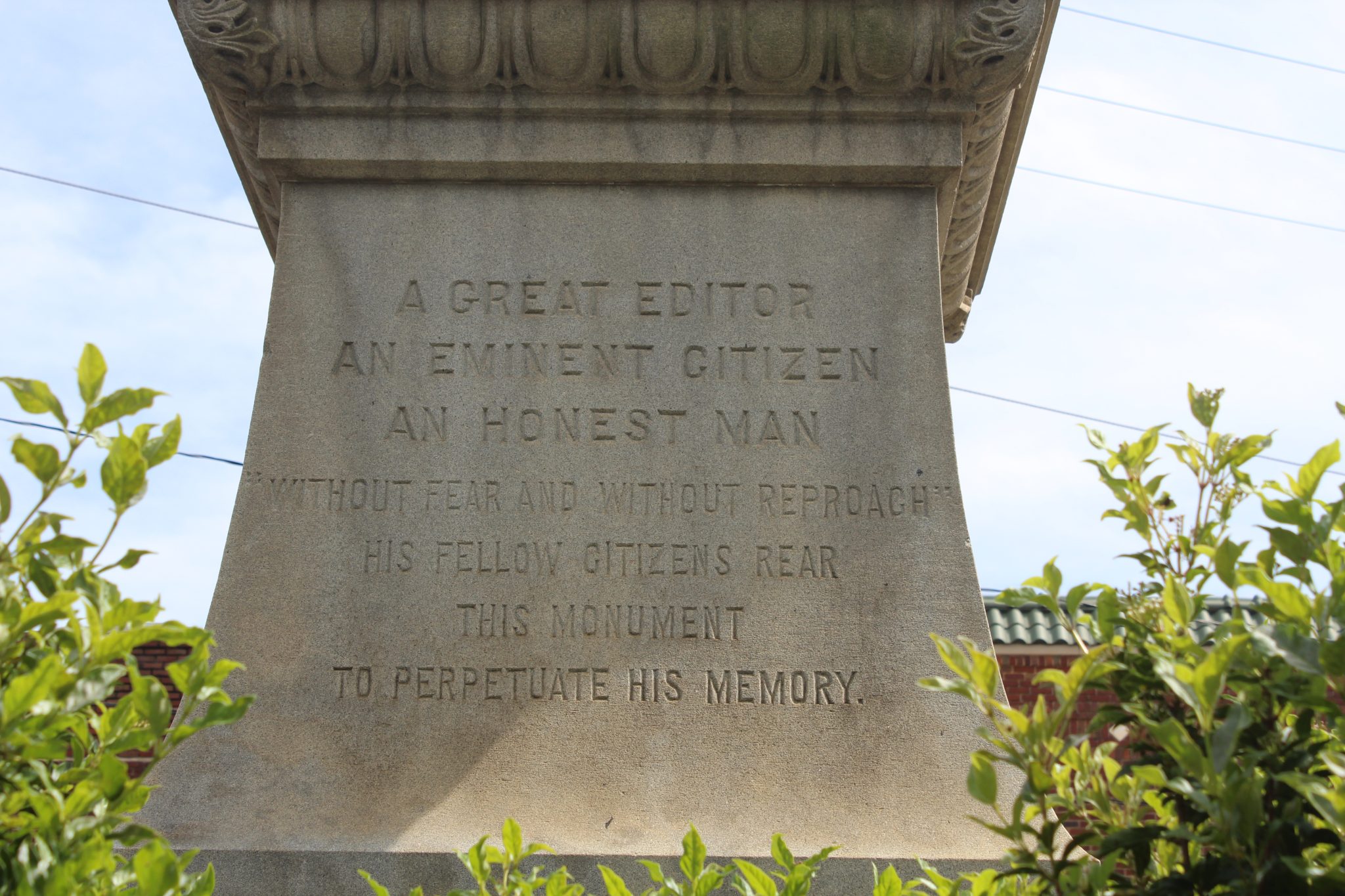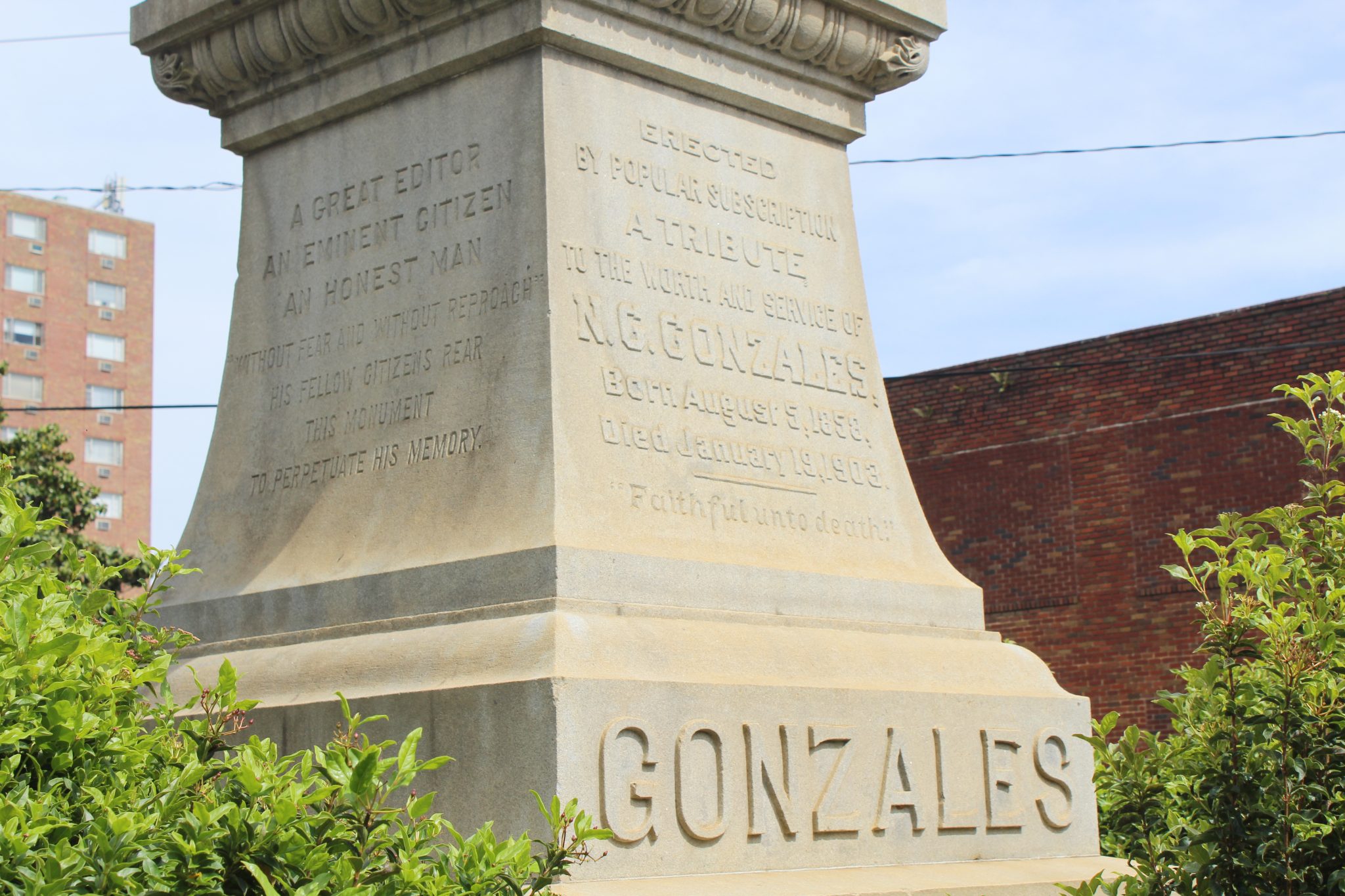 The Gonzales monument. "There are not many monuments in the United States to newspaper editors but we have one in Columbia."