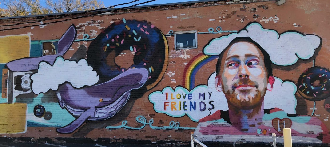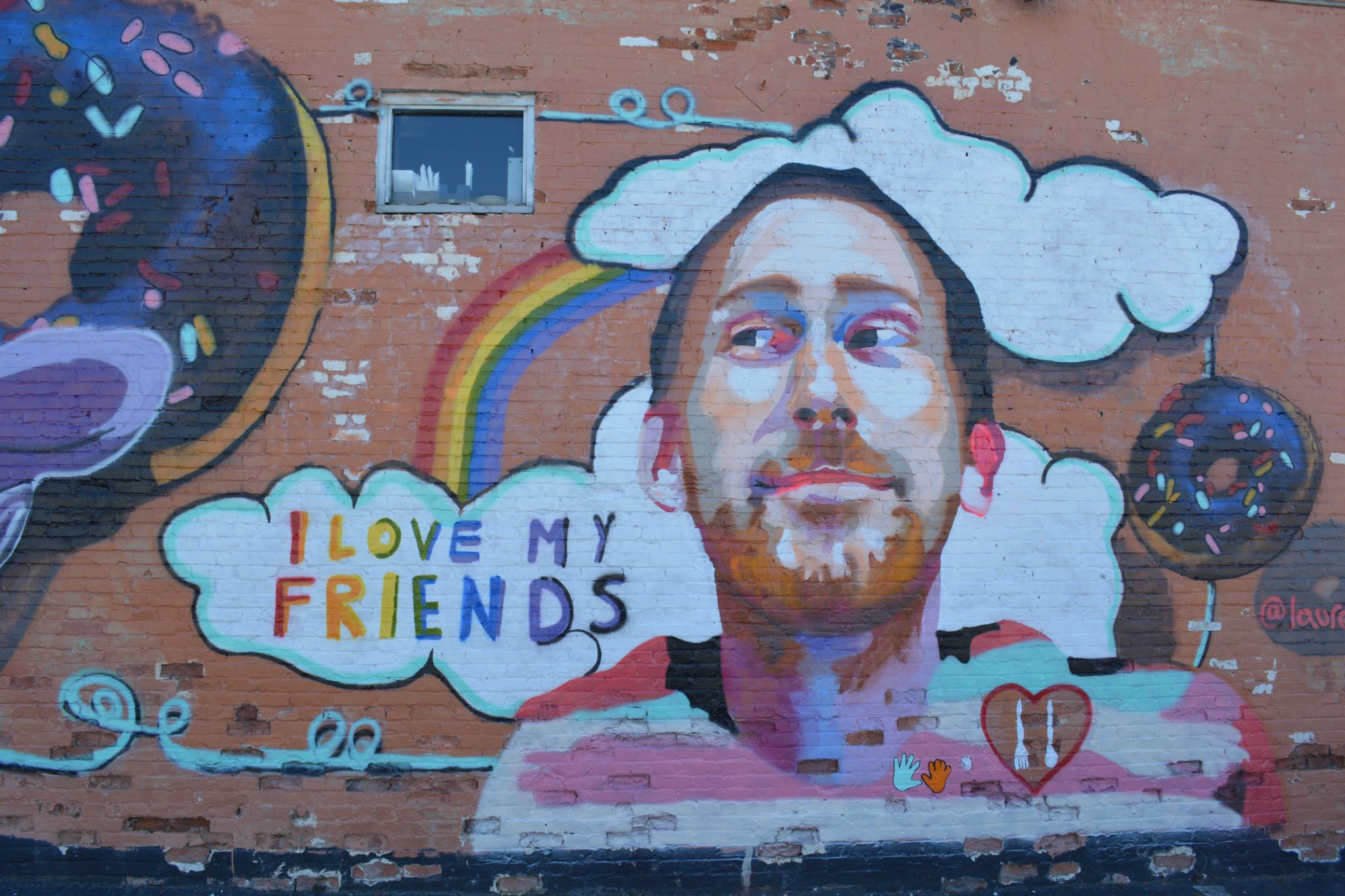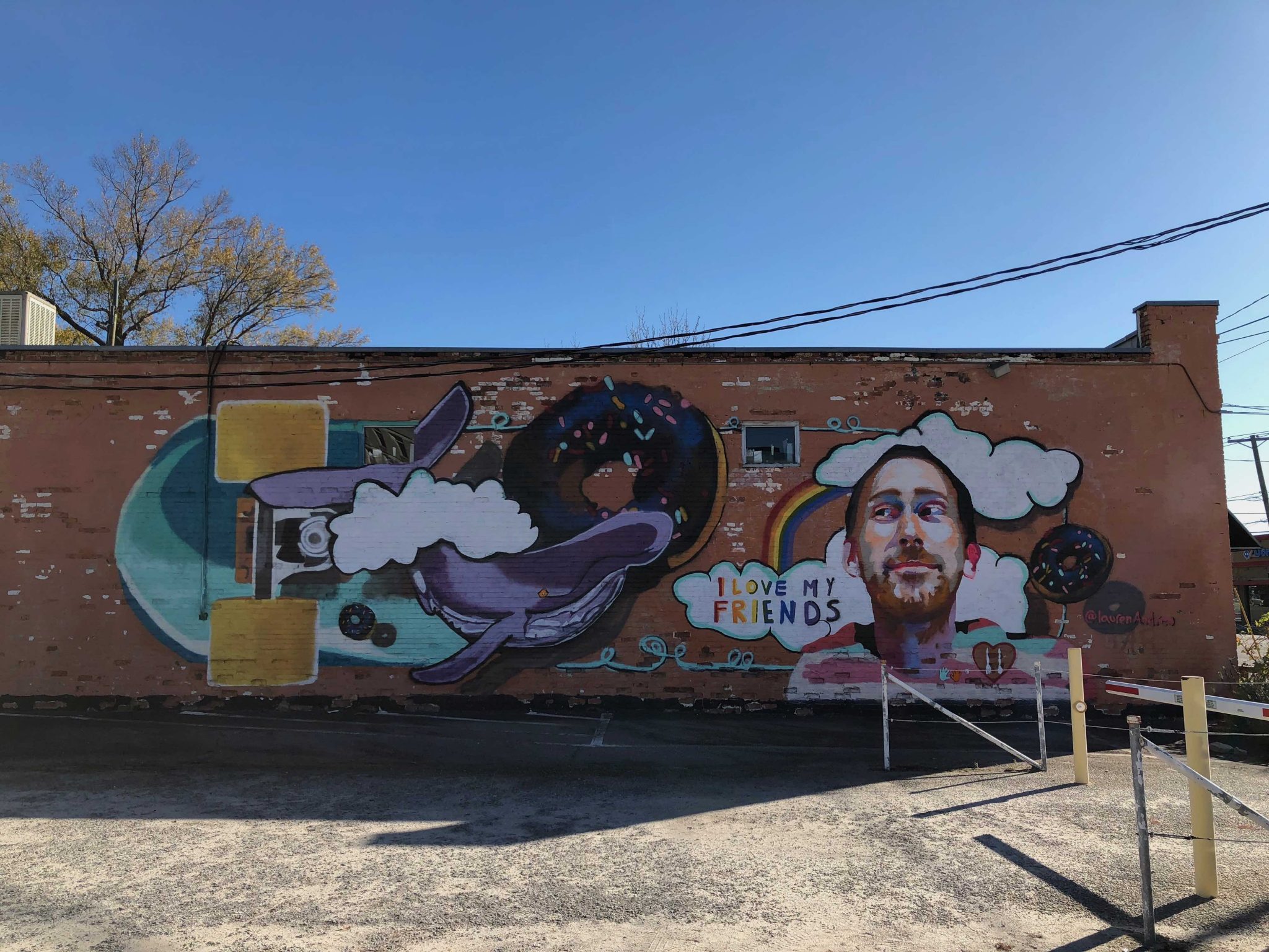 Aaron was an active member of the local indie music scene, skateboard community, and St. Martin's In-the-Fields Episcopal Church. He was known for his big heart and monthly community potlucks where he and his wife, Jessica, opened their doors to anyone without need for personal invitation. The mural features iconic images representative of Aaron’s personality and life.