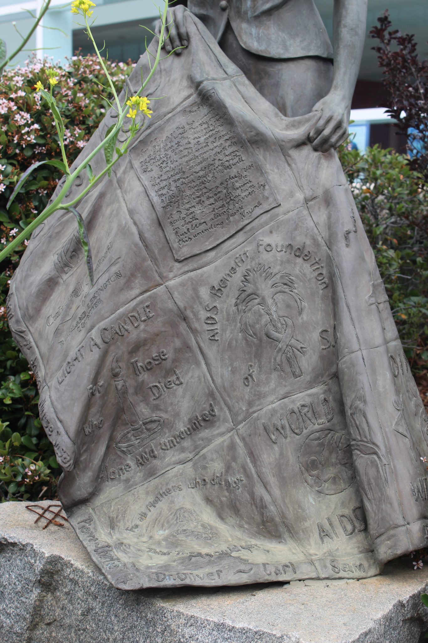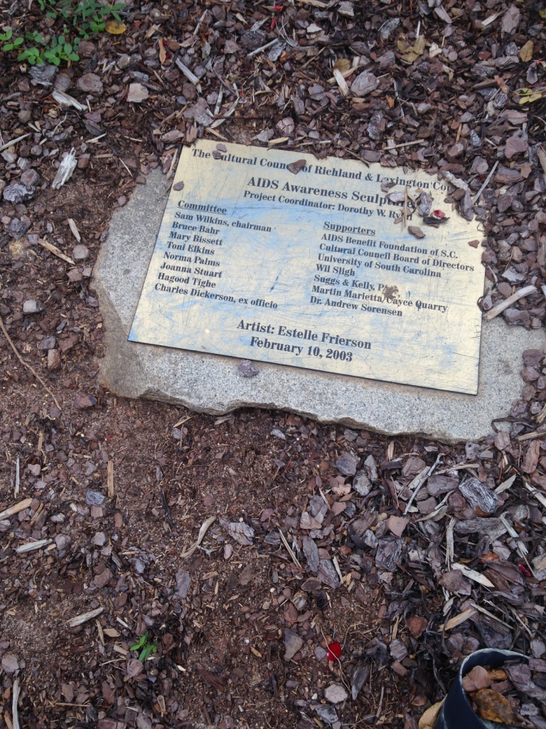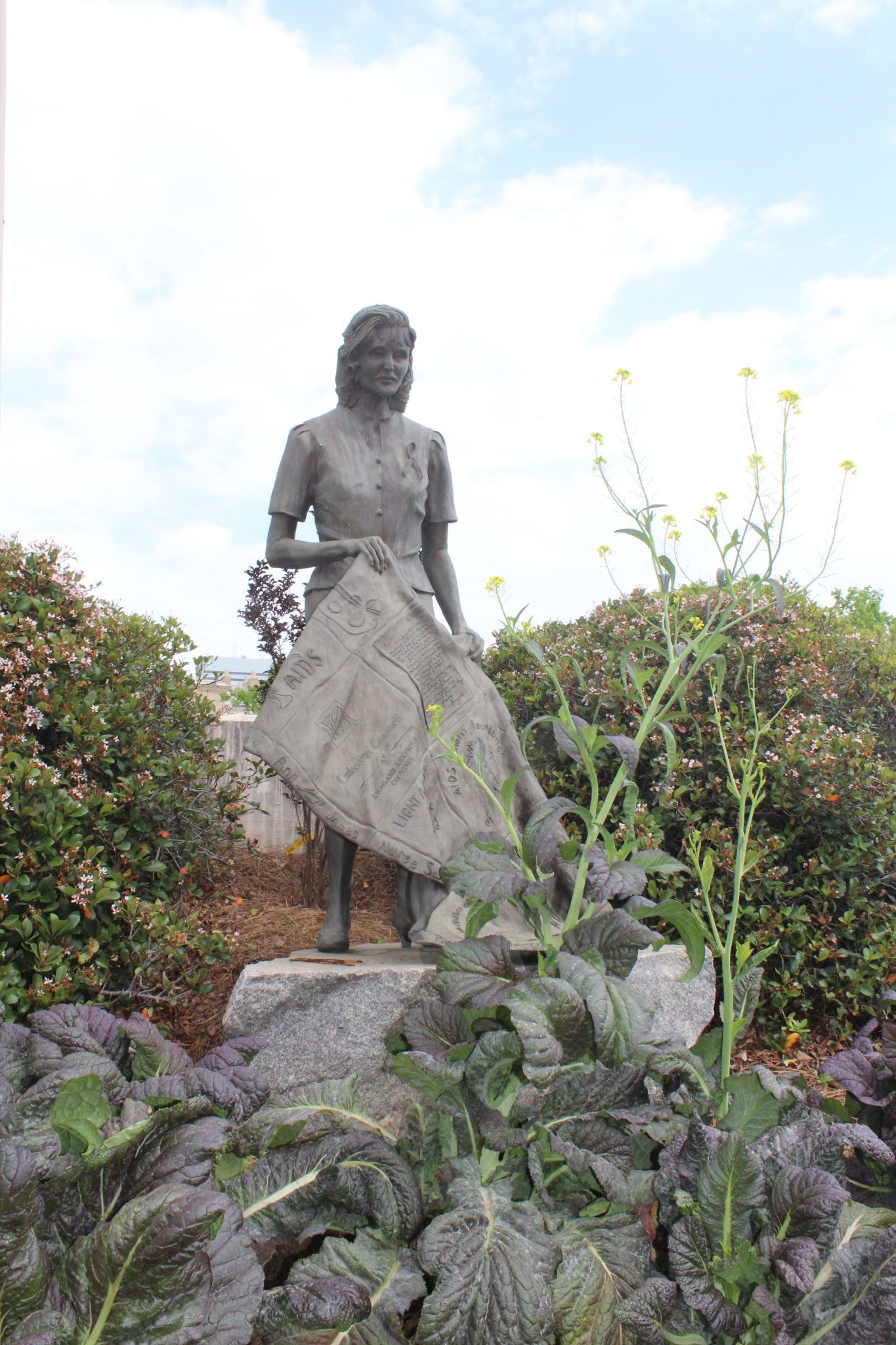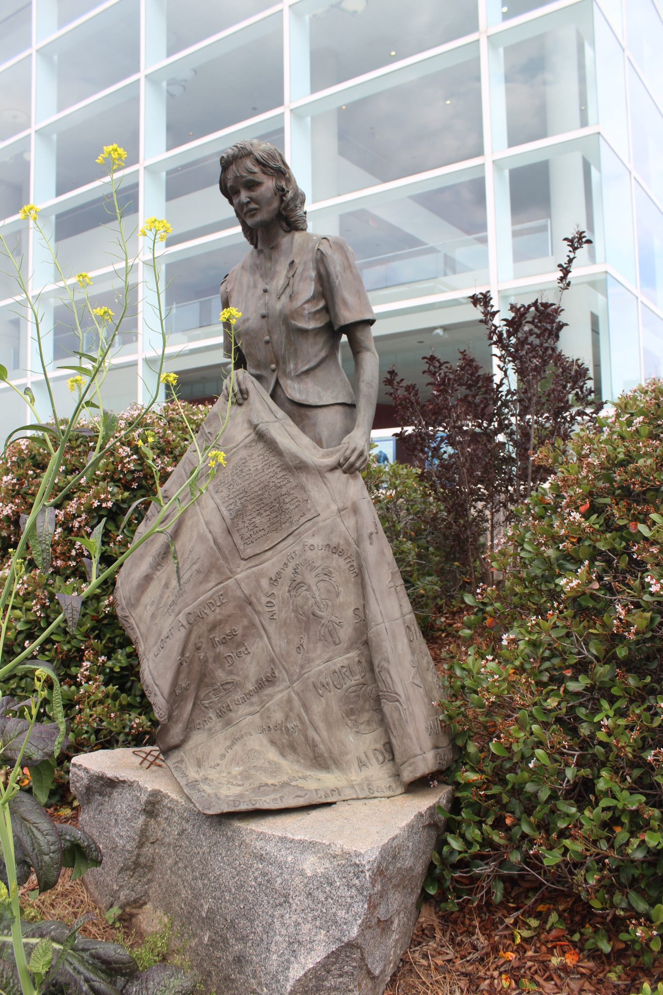 This bronze sculpture depicts a 5’2″ woman holding an unfurled quilt emblazoned with inspirational panels and the seal of the AIDS Benefit Foundation of South Carolina. The piece was installed at the Koger Center for the Arts in 2003 as a tribute to the University of South Carolina’s commitment to AIDS research and education.