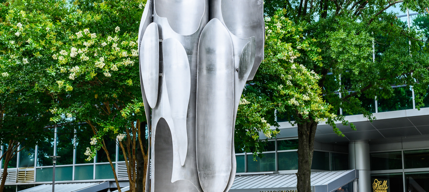 Architecture of Strength, by Deedee Morrison, is made of 316 polished stainless-steel pipes that are laser-cut and welded to create the sculpture. It is also illuminated for night-time viewing in its prominent location. The form begins with the foundation, a circular pillar of strength. The layering of the lives in meaning and the contributions of these women to Columbia, create the form. The sculpture is a form made up of many parts, the parts of the female that are invaluable in every community. Family, vision, courage, strength, integrity, honor, hope, resilience, intelligence, compassion, steadfastness, determination and drive hold our community together. The faceless, nameless nature of this art represents the idea that it takes all kinds of women, all shapes, all sizes, and beliefs, to build a community.