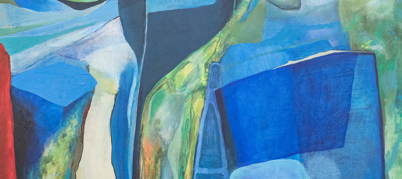 This abstract interpretation of the artistic theme rivers and streams was painted with numerous thin layers of semi-transparent paint in an effort to create an illusion of depth while vivid colors reflect the luminosity created by the Southern light. Jasinski has exhibited her award winning abstract paintings in the US and Europe.
