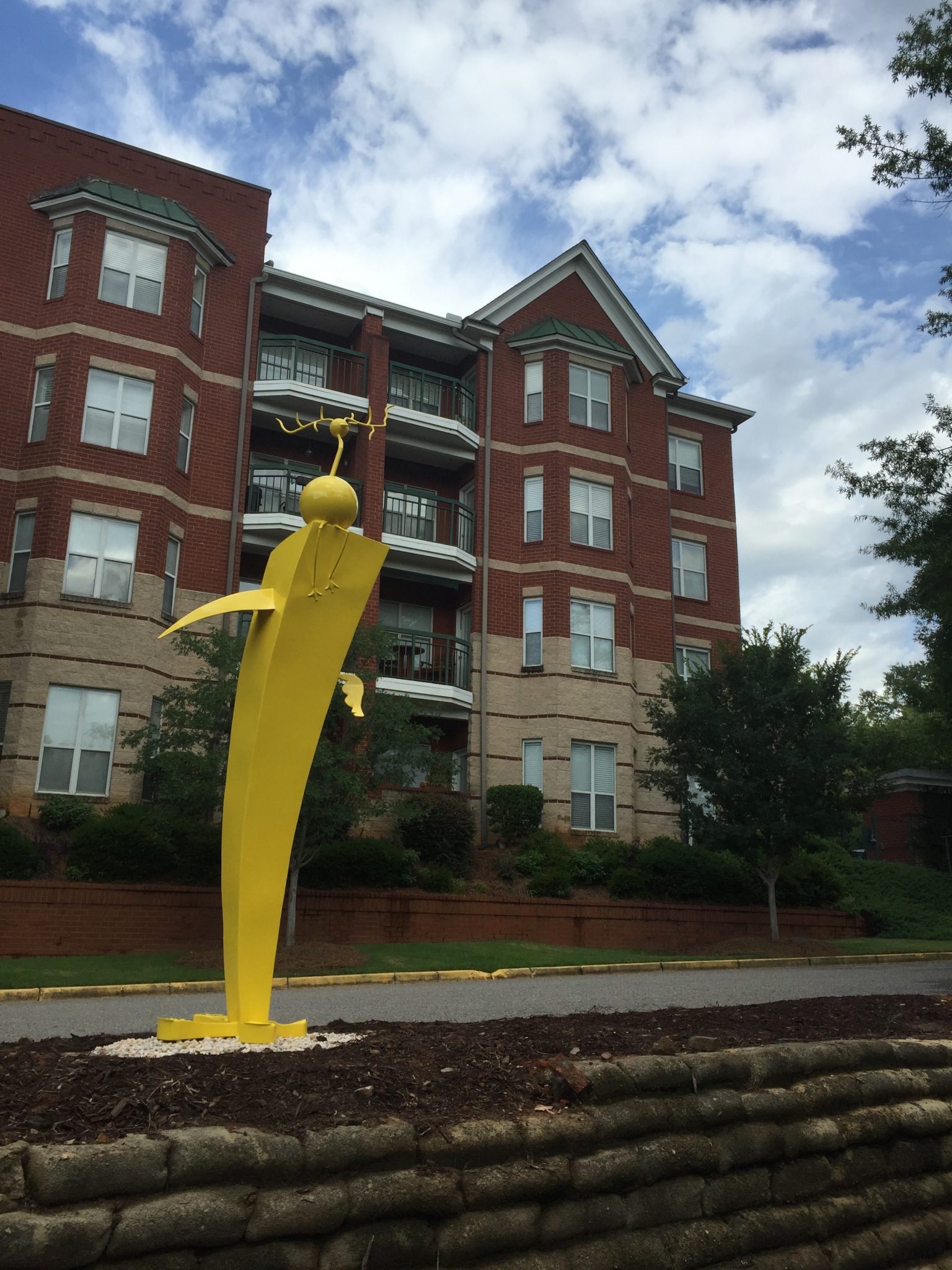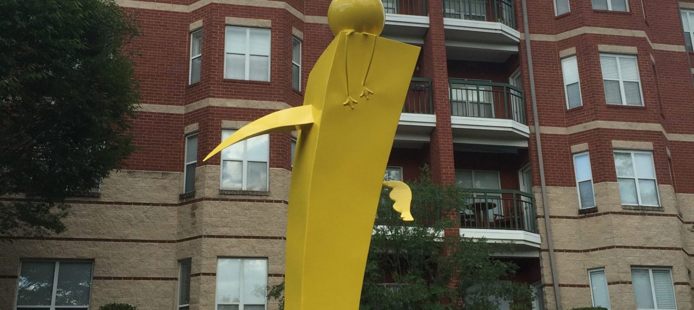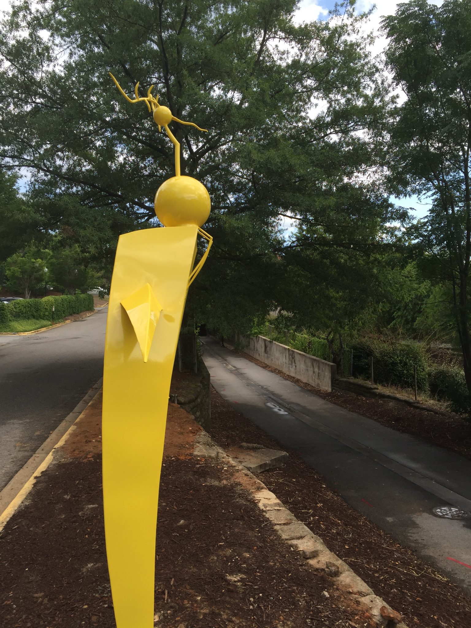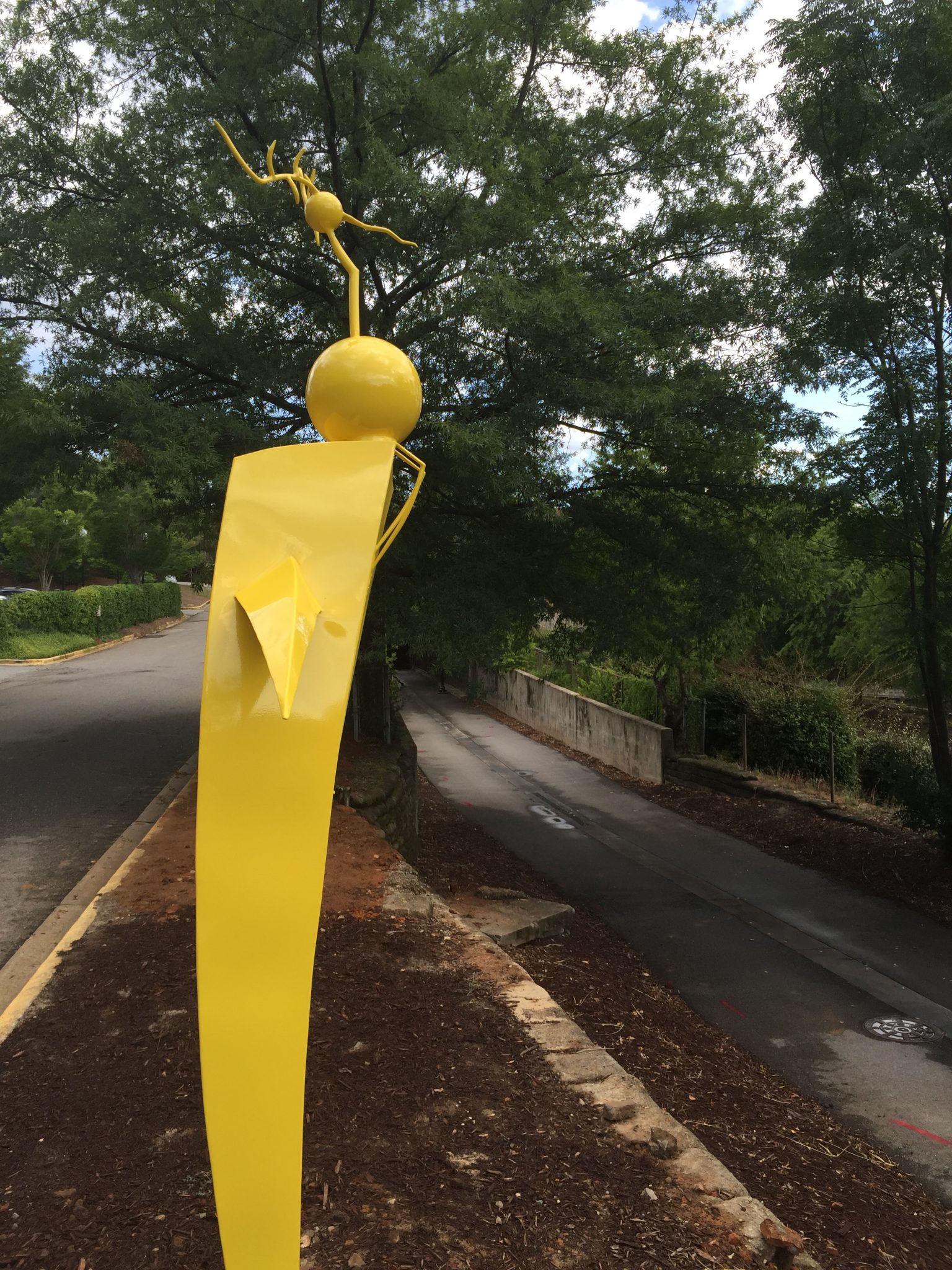The sculpture is at the Taylor Street entrance to the tunnel adjacent to Finlay Park, which opened July 13, 2016 after completion of Phase II of construction. The eye-catching yellow sculpture adds to the list of Vista Guild-commissioned public art pieces and is whimsical and approachable, according to the artist. The sculpture also follows McAbee’s current body of work, which utilizes humor with formal and conceptual qualities to create a visual conversation with the viewer.