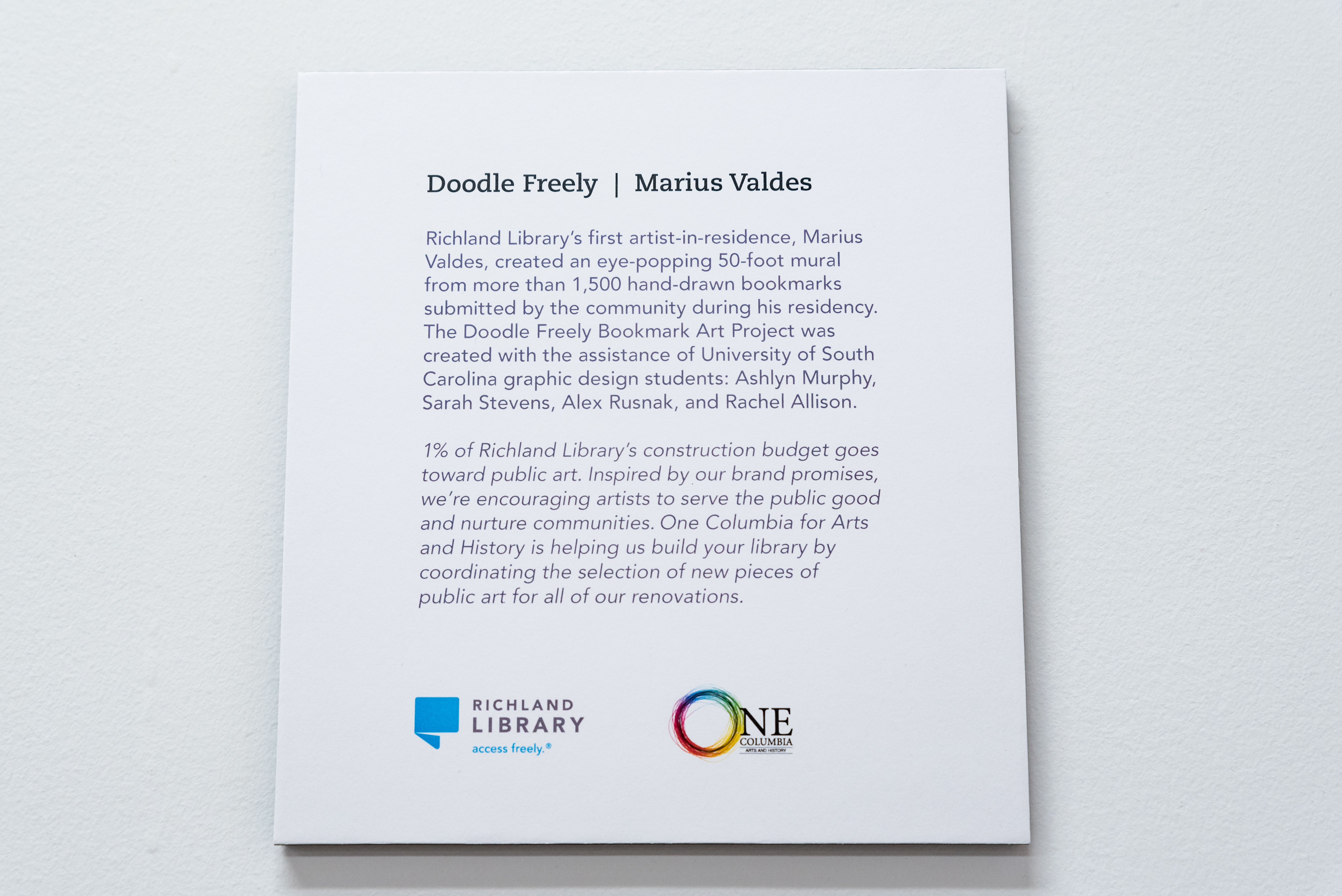 Valdes was Richland Library's first artist-in-residence. The Doodle Freely Bookmark Art Project was created with the assistance of University of South Carolina graphic design students: Ashlyn Murphy, Sarah Stevens, Alex Rusnak and Rachel Allison.