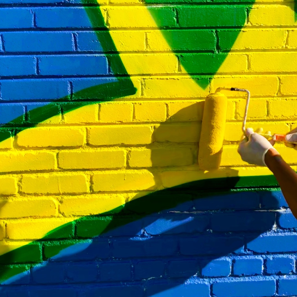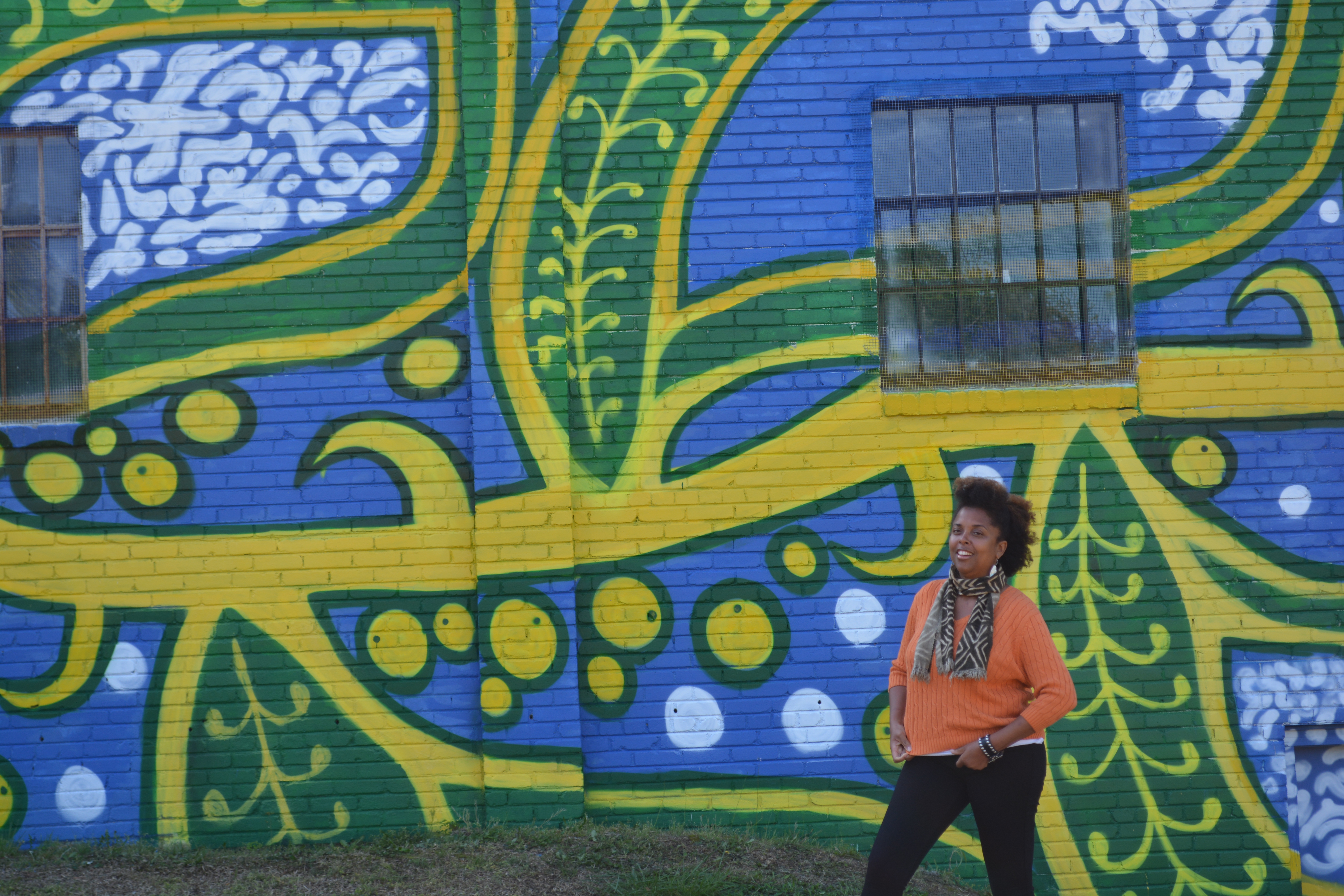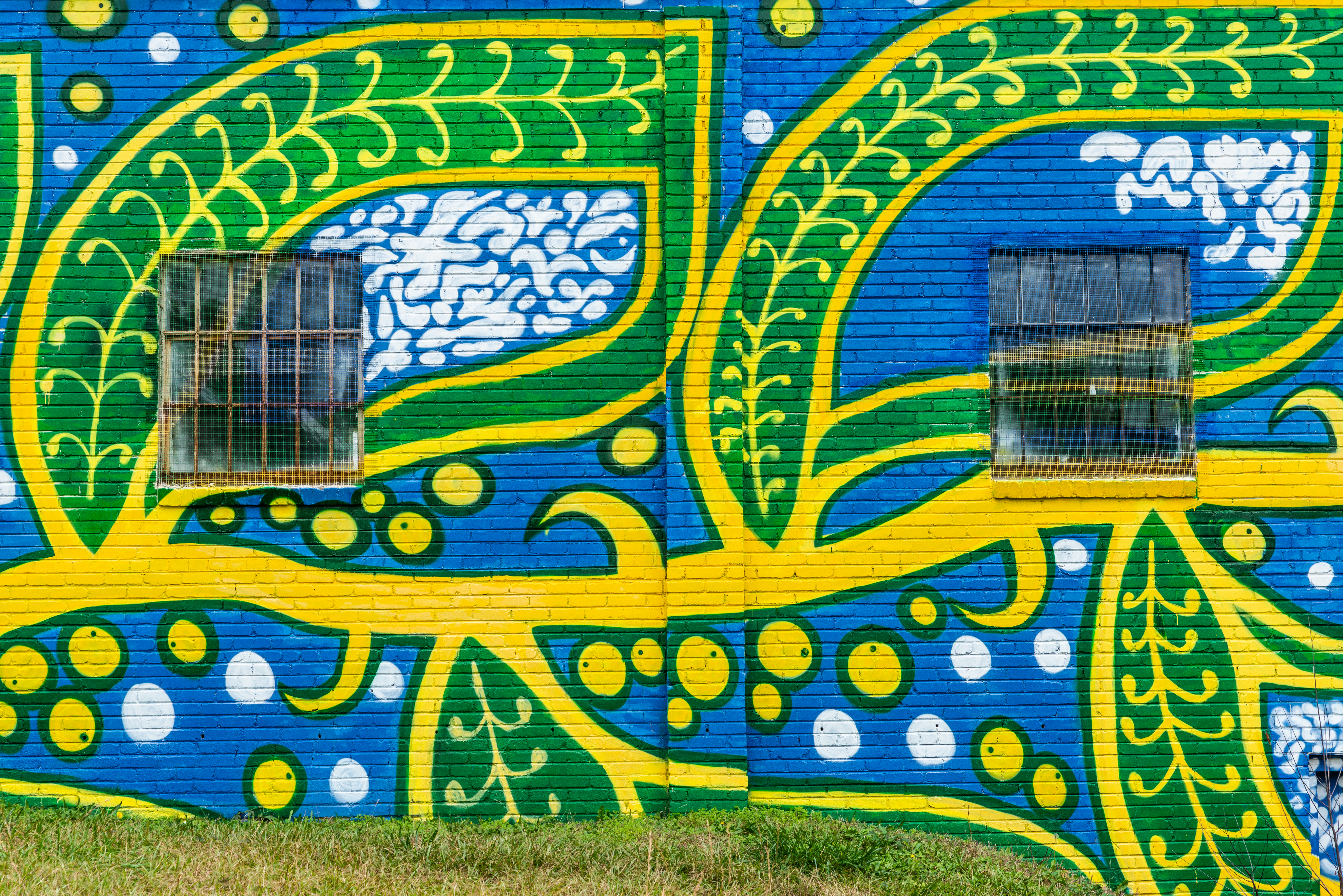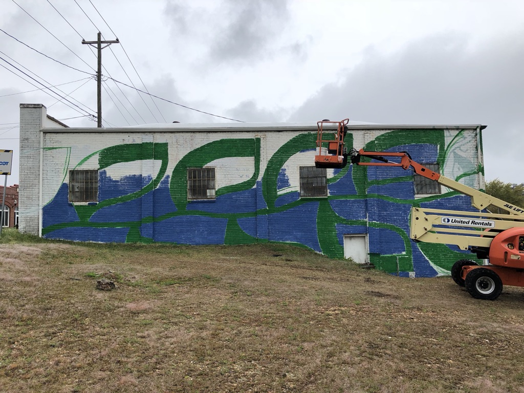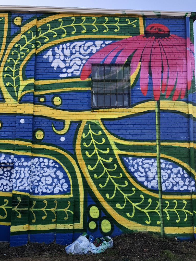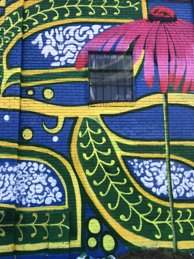 “It has been such a pleasure working with Hyatt Park civic leaders, neighbors and friends to determine the design of this monumental mural, and then within the community to create the wall itself. The resulting 40' x 100' foot image celebrates the commitment within Hyatt Park to create a diverse and inclusive community, evident in the neighborhood network, which maintains the adjacent community garden.” states Ms. Minniefield. “As an African-American artist living and working in the South, I am excited to allow my work to serves as a symbol of pride and commitment to diverse and inclusive histories and cultures living and thriving within a community. The wall features a vibrant pattern common to West African fabric, a signature element in my work. The pattern chosen for the Hyatt Park wall depicts a growing vine rich in color and hopefulness. The mural literally appears to grow out of the Hyatt Park community garden below. It also features a giant Echinacea flower, which actually blooms in the garden. The flower symbolizes healing as it extends into the air as if it too is a product of the collective investment made by the neighbors in the area. I am really honored to know that my work will forever highlight the beauty which is Hyatt Park.”