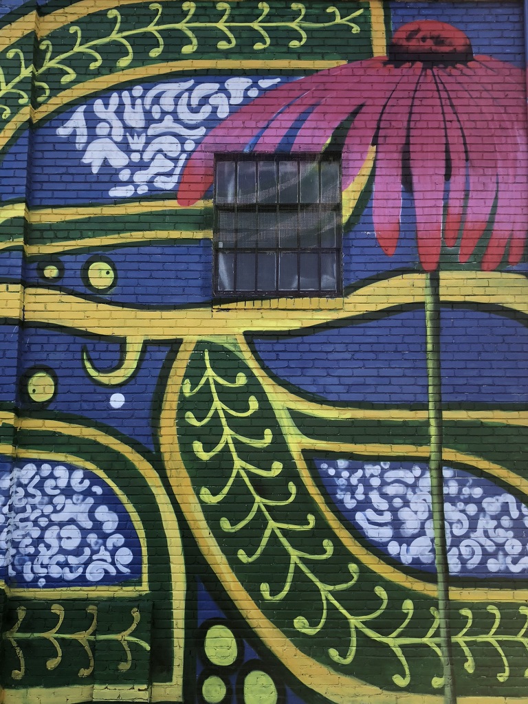As Jocelyn and Lyman Munson, the owners of the building, explain: “We hope Charmaine’s mural will inspire neighborhood children and adults with the reason and purpose for growing pollinating flowers. Hyatt Park offers opportunities for artists to live in our community and create vibrant expressions of what we see is our community’s bright future.”