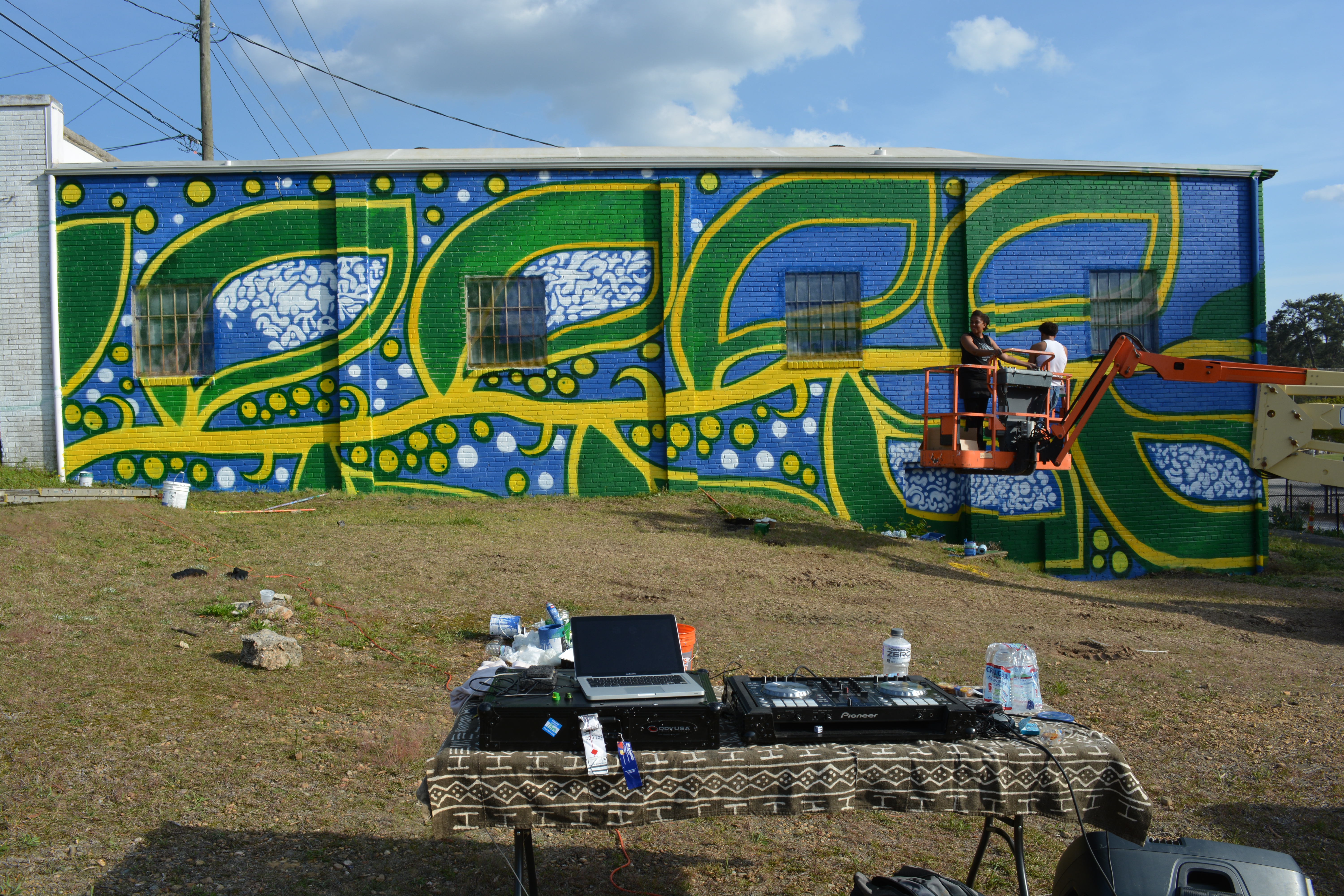 Annually, Indie Grits Labs and One Columbia come together to create a unique mural within the theme of Indie Grits. In 2018, many activities took place in the Eau Claire and North Columbia area around Hyatt Park. Through a partnership with property owners Jocelyn and Lyman Munson and support from the Knight Foundation through the Central Carolina Community Foundation, as well as materials provided through a donation by Sherwin Williams women’s group and Store #2076, the mural will stand as a vivid reminder of the roots and growth of the Hyatt Park and Eau Claire communities.