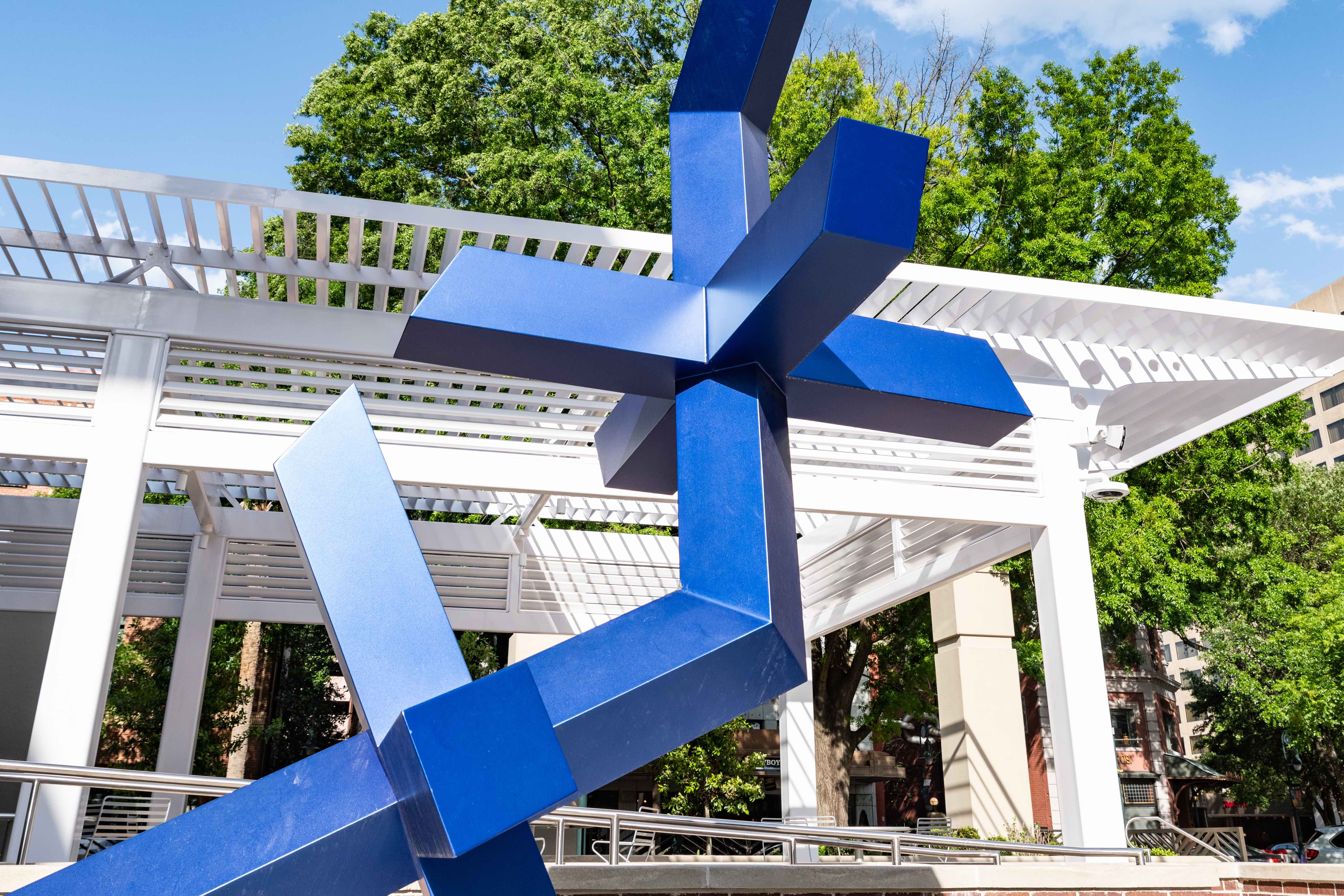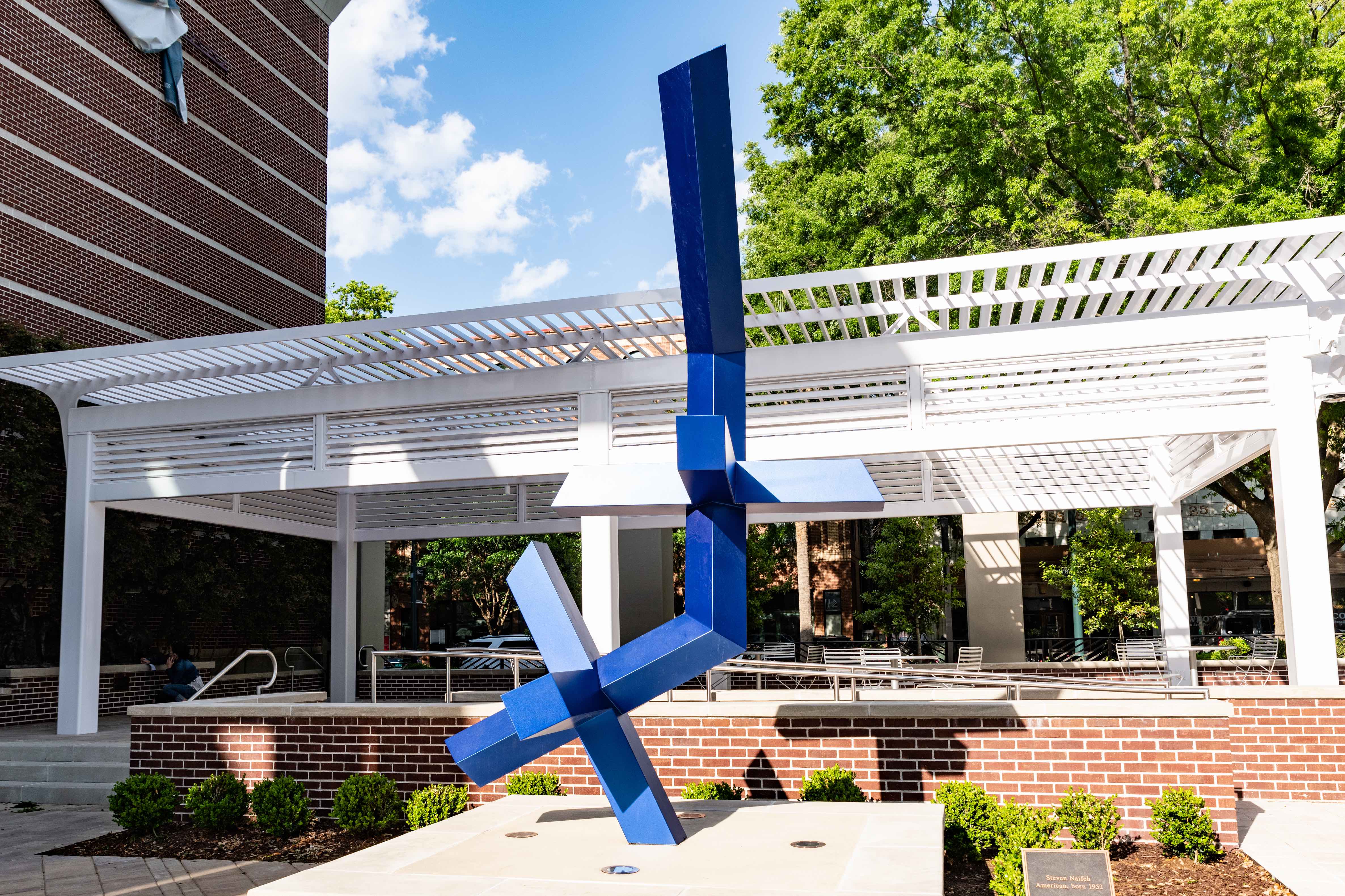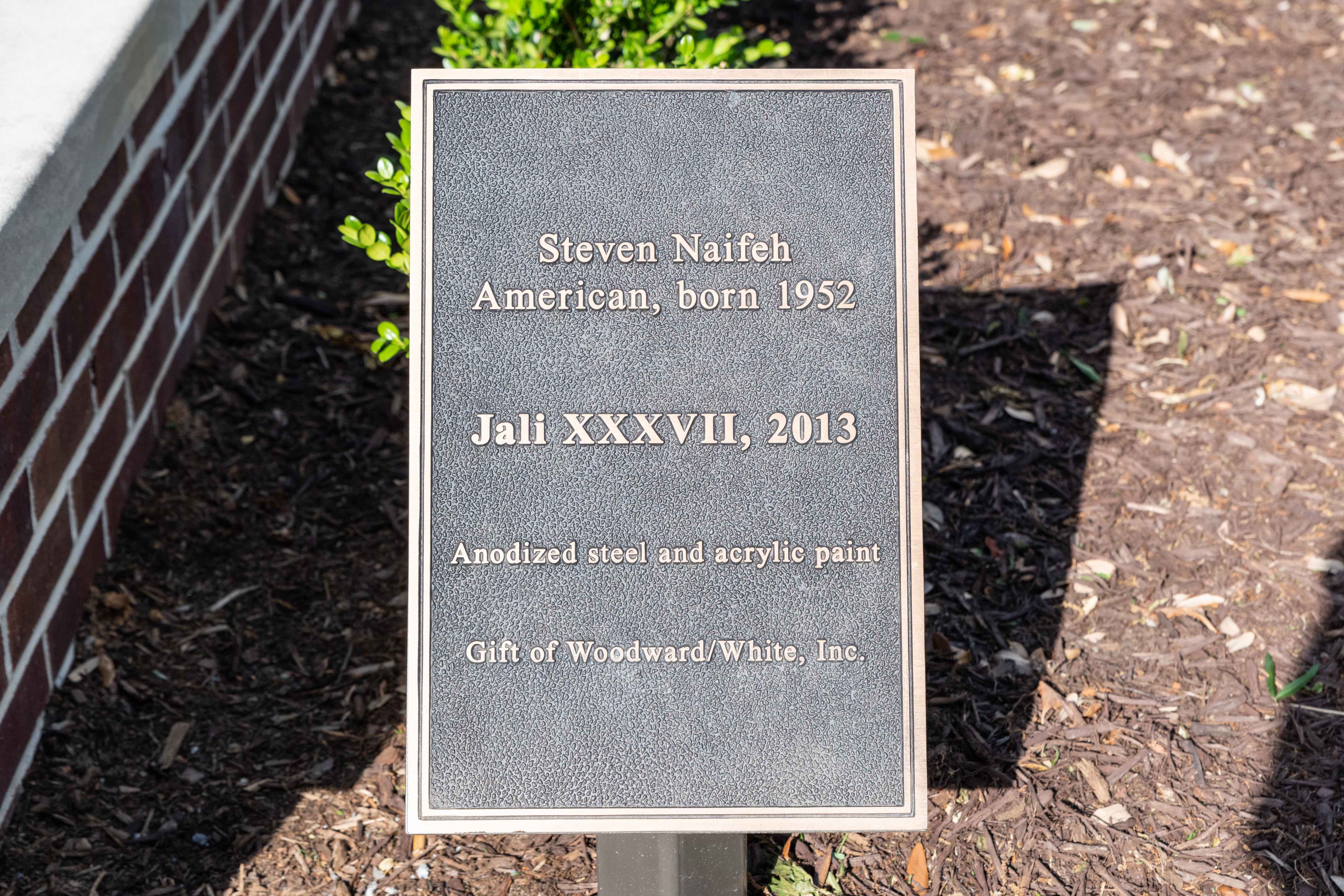 This piece was created by artist and writer Steven Naifeh. His work was featured in an exhibition titled Found in Translation that was shown at the Columbia Museum of Art between May and September 2013, his first ever retrospective in America. Naifeh draws inspiration from western art and Islamic architecture for large scale abstracted works. The name of this piece, Jali, is derived from an Indian word meaning a perforated stone or latticed screen, usually with a decorative pattern using geometric shapes and sometimes calligraphy or floral elements. Naifeh is perhaps best known as the co-author of the Pulitzer Prize-winning biography Jackson Pollock: An American Saga (with Gregory White Smith). His most recent work, Van Gogh: The Life (also with Smith,) has been praised as “definitive” by the curator of Van Gogh Museum in Amsterdam and was named “Art Book of the Year” by The Times of London. Spending his childhood throughout the Middle East, including Iran, Iraq, Jordan, and the U.A.E., Naifeh became enamored by the beauty of the geometric shapes and patterns that decorated everything from the textiles to the buildings of the Islamic world. Naifeh also became interested in the mathematical basis of these shapes and patterns, which were developed a millennium ago throughout the world of Islam. He has adapted those ancient formulas to modern purposes in conceiving his geometric, often large-scale works. The Geometric Abstraction movement of the United States and Europe also resonates in Naifeh’s work. The movement, embraced by artists such as Wassily Kandinksy and Kazemir Malevich, relied on line, color, and geometric shapes. By looking to both the art of the Middle East and the West, Naifeh highlights the similarities and harmonizes two cultures that are often found at odds. Naifeh studied art history at Princeton and Harvard Universities, focusing on nineteenth- and twentieth-century Western European and American art. At the same time his own art began to explore the kinship between the geometric abstraction of Western art and the millennium-old tradition of Arab and Islamic abstraction. Naifeh studied contemporary art with Sam Hunter, former curator of the Museum of Modern Art and the Jewish Museum, and Islamic art with Oleg Grabar and Cary Welch. It has taken 40 years for these influences to fully emerge in Naifeh’s most recent body of work. Born in Iran in 1952 to American diplomats, Steven Naifeh lives and works in Aiken, South Carolina. He was the first artist ever to have a solo exhibition in Abu Dhabi, which was held in 1975 at the Embassy of the United States. His work has been exhibited at the Columbia Museum of Art, Columbia, SC; the Princeton University Art Museum, Princeton, NJ; and the Consulate of the United States, Kaduna, Nigeria. As an artist and author, Naifeh has been profiled in many publications, including The New Yorker, The New York Times, The  Washington Post, USA Today, Harvard Magazine, People, and The International Herald Tribune.