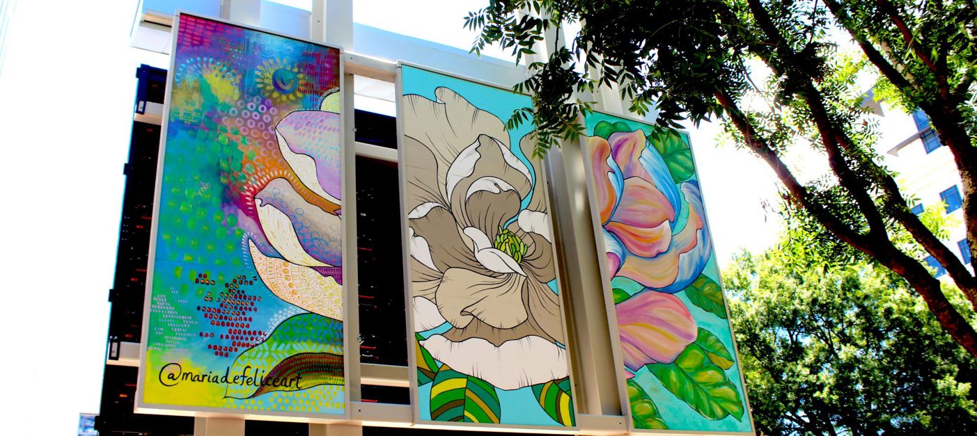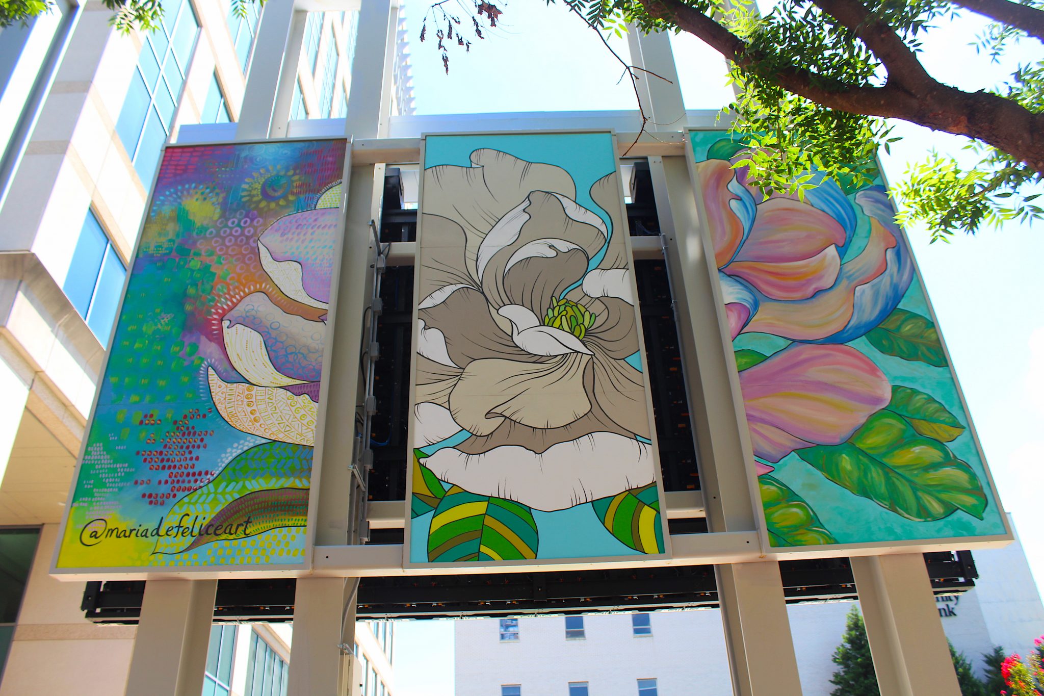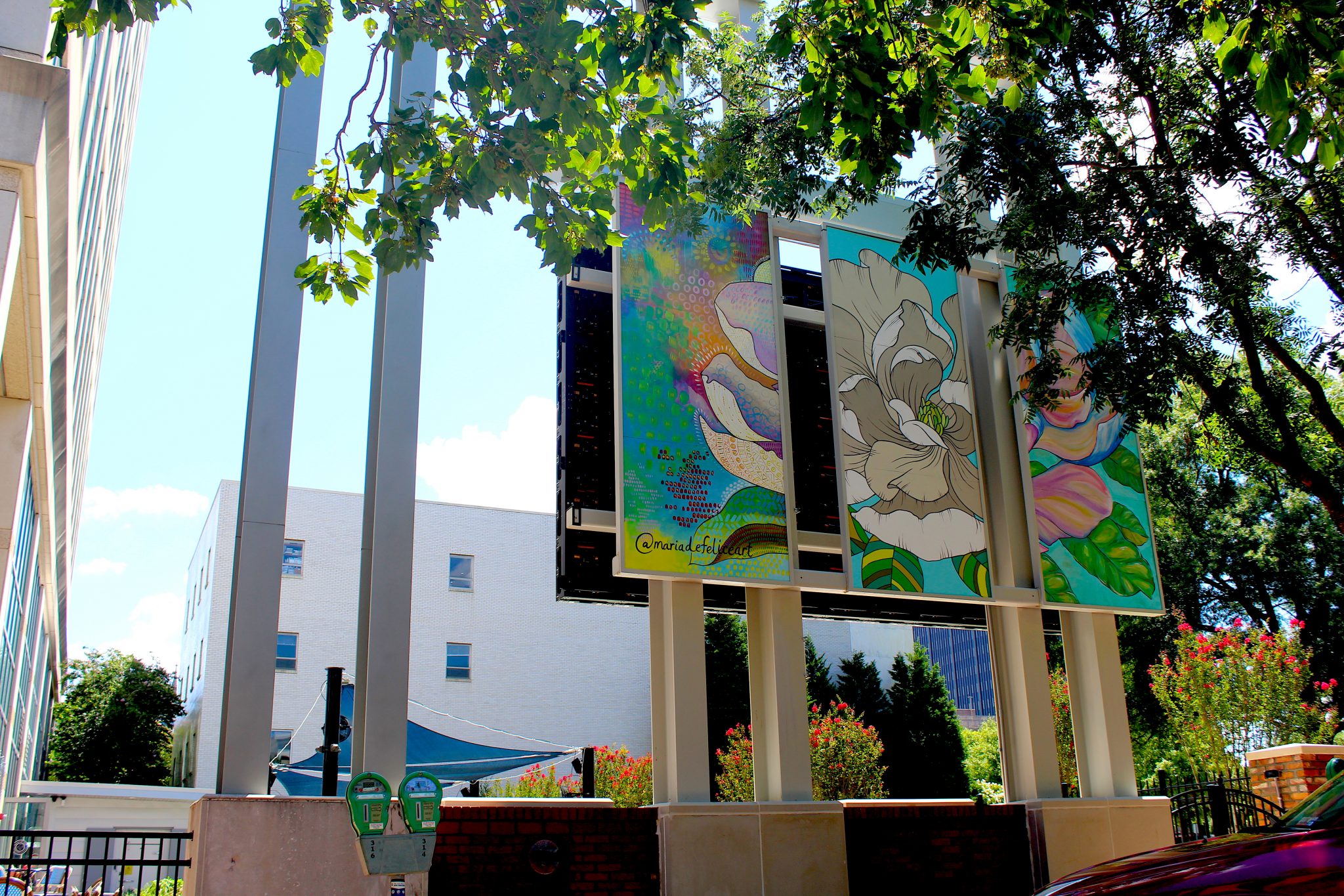 We (One Columbia) are very proud to have helped to facilitate this new mural in 2020, “Magnolia on Main” by Maria DeFelice (@mariadefeliceart). The project was made possible by the folks at Market on Main. It features a triptych of panels in three different styles, yet of a cohesive image. The message behind this piece is celebrating the differences of those in our community, and the beauty and strength when we come together, unified as one.