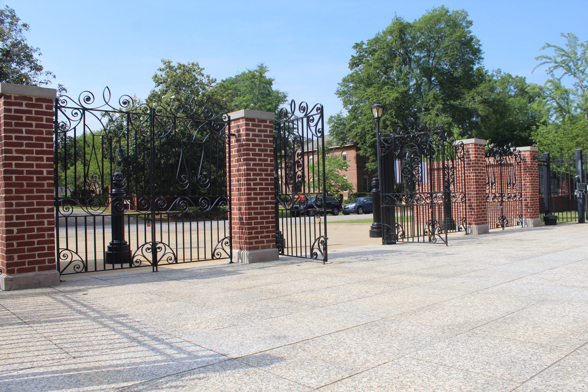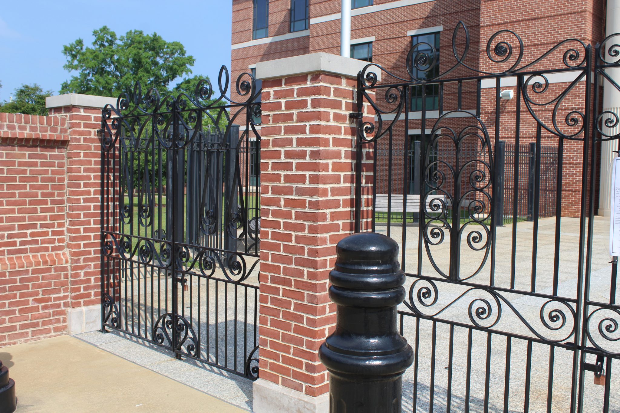 The gates were fabricated at the Simmons Blacksmith Shop by his apprentices Joseph Pringle (cousin) and Carlton Simmons (nephew). These men forged the gates into shape using hammers and an 18th century anvil.