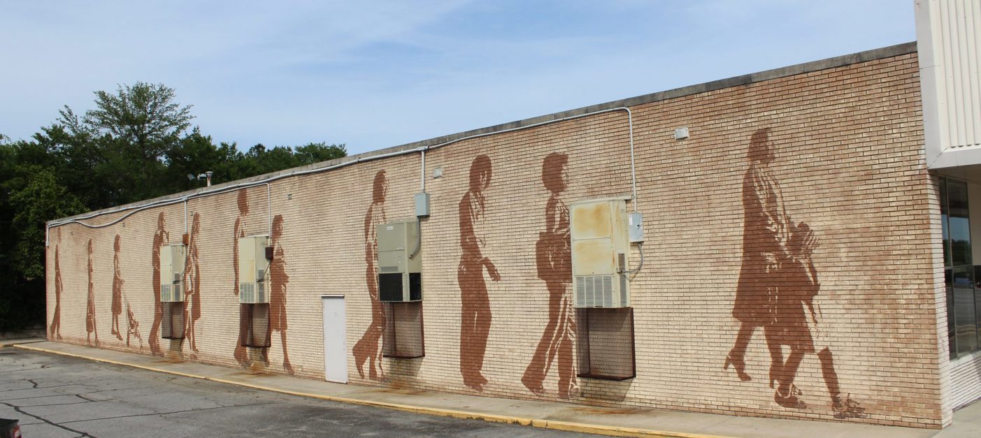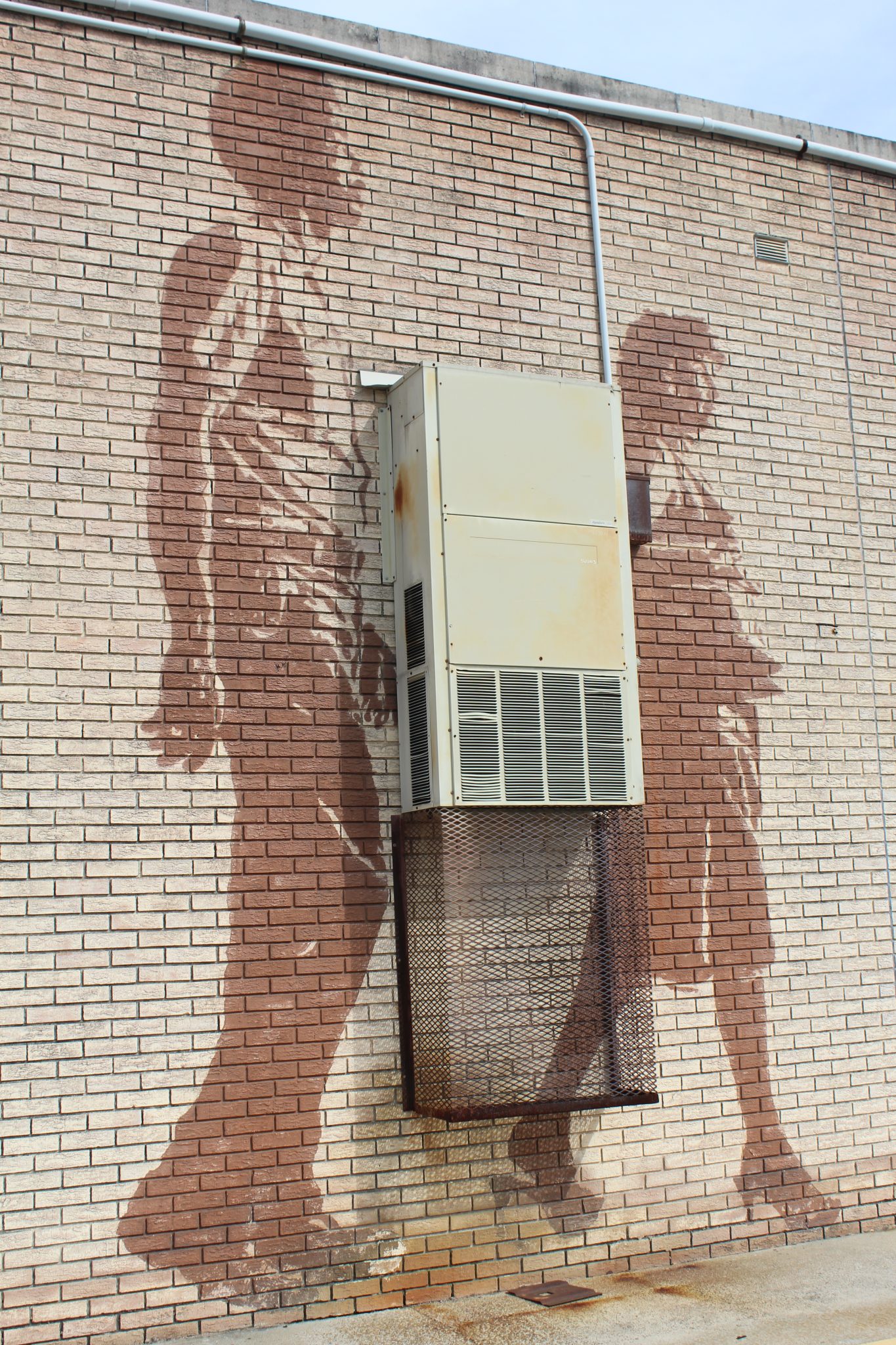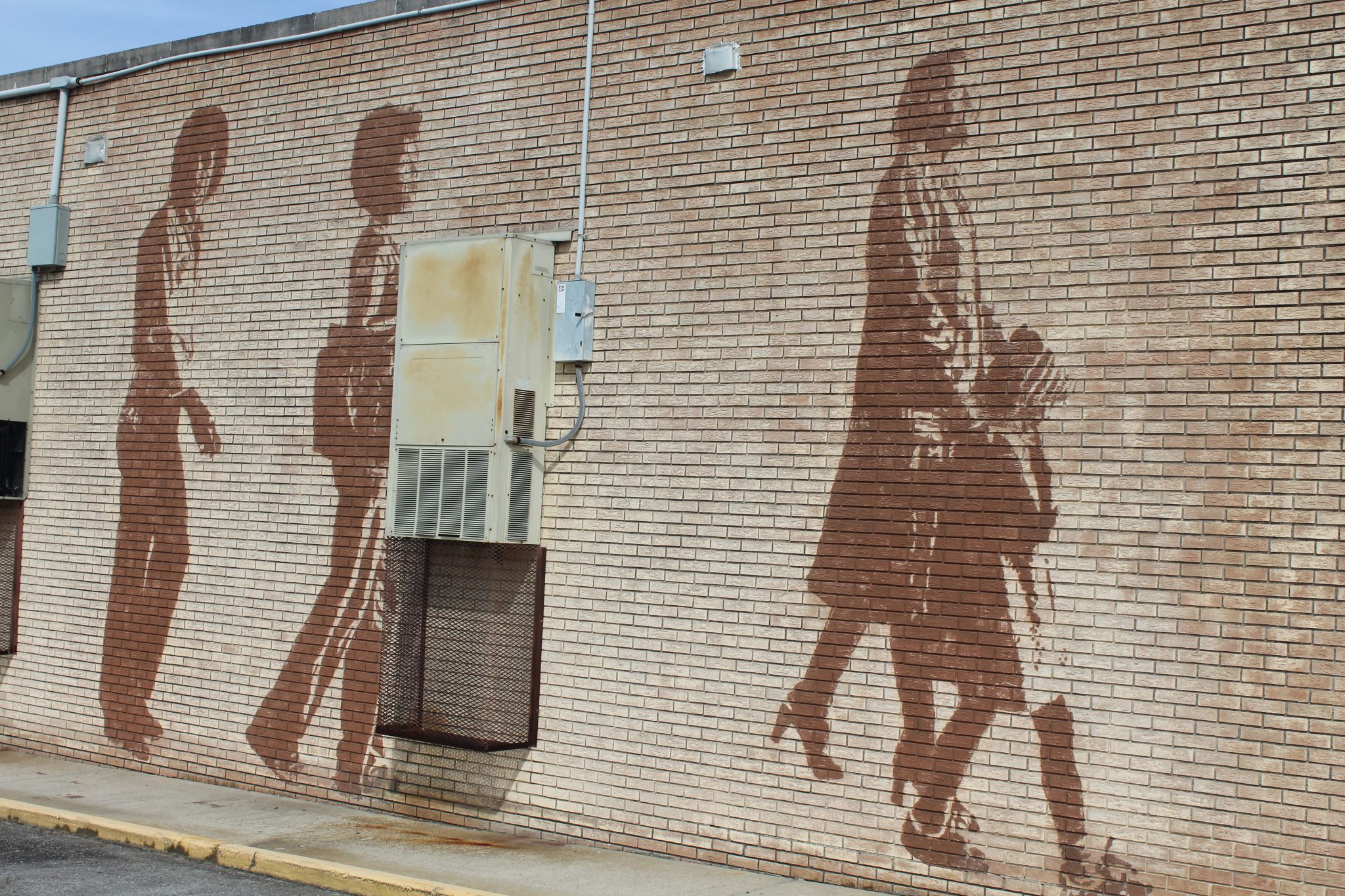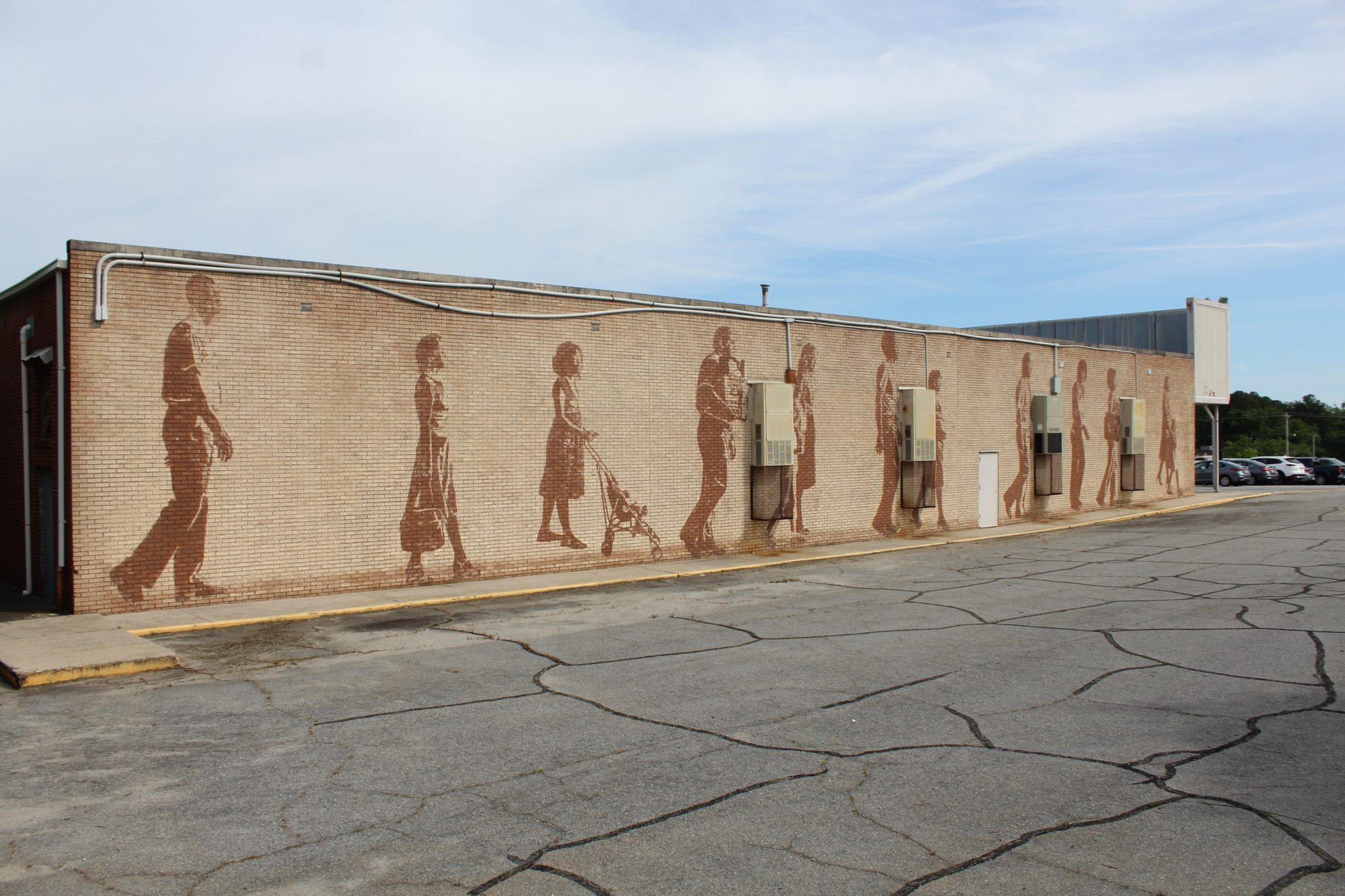 This large-scale mural is located on the side of the Midland's Children's Adoption Center off Two-Notch Rd. Waldrop painted figures of people on the side of the building to replicate all different types of people who have the opportunity to adopt. It is very moving, especially bring on such a large scale.