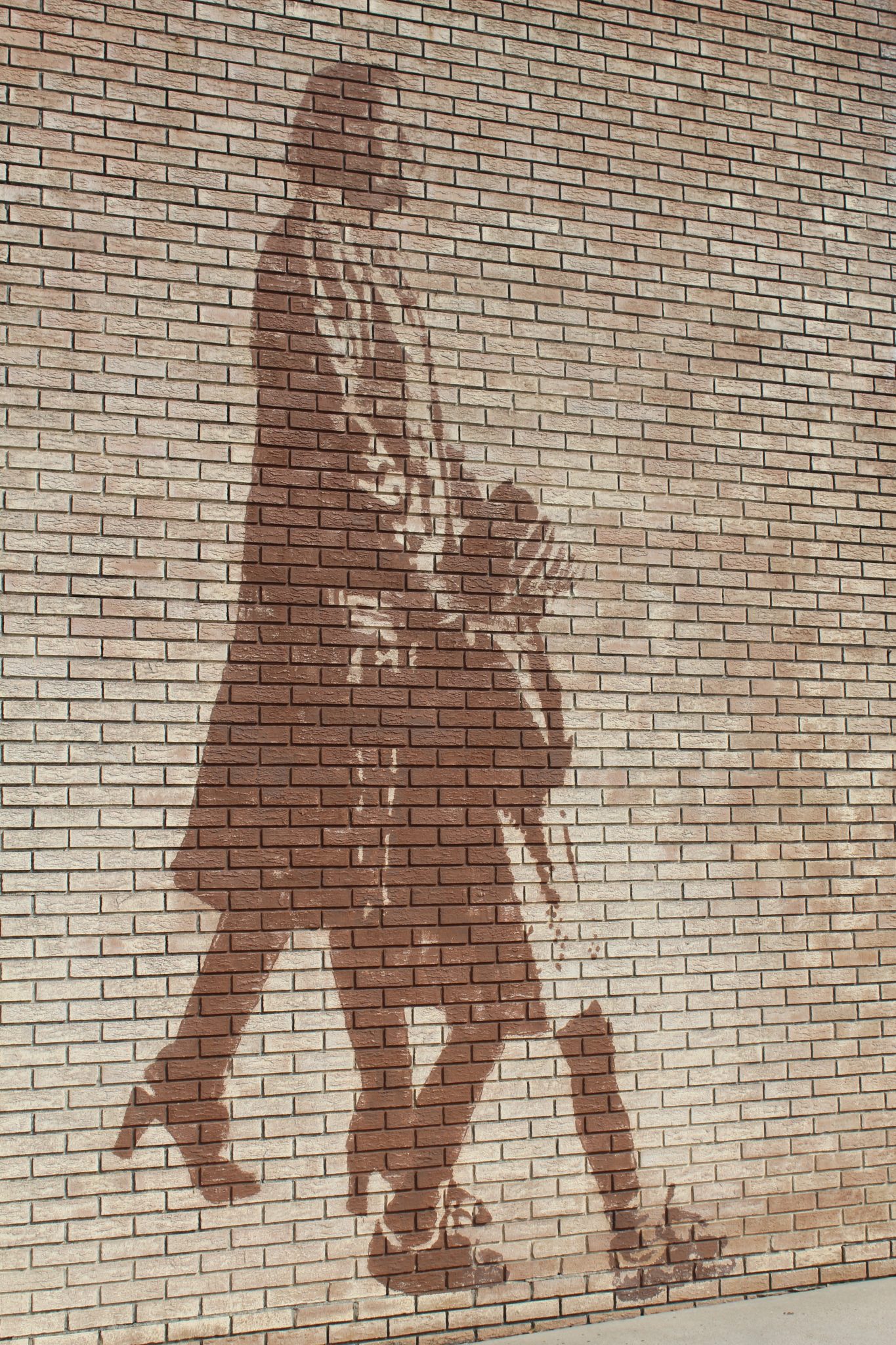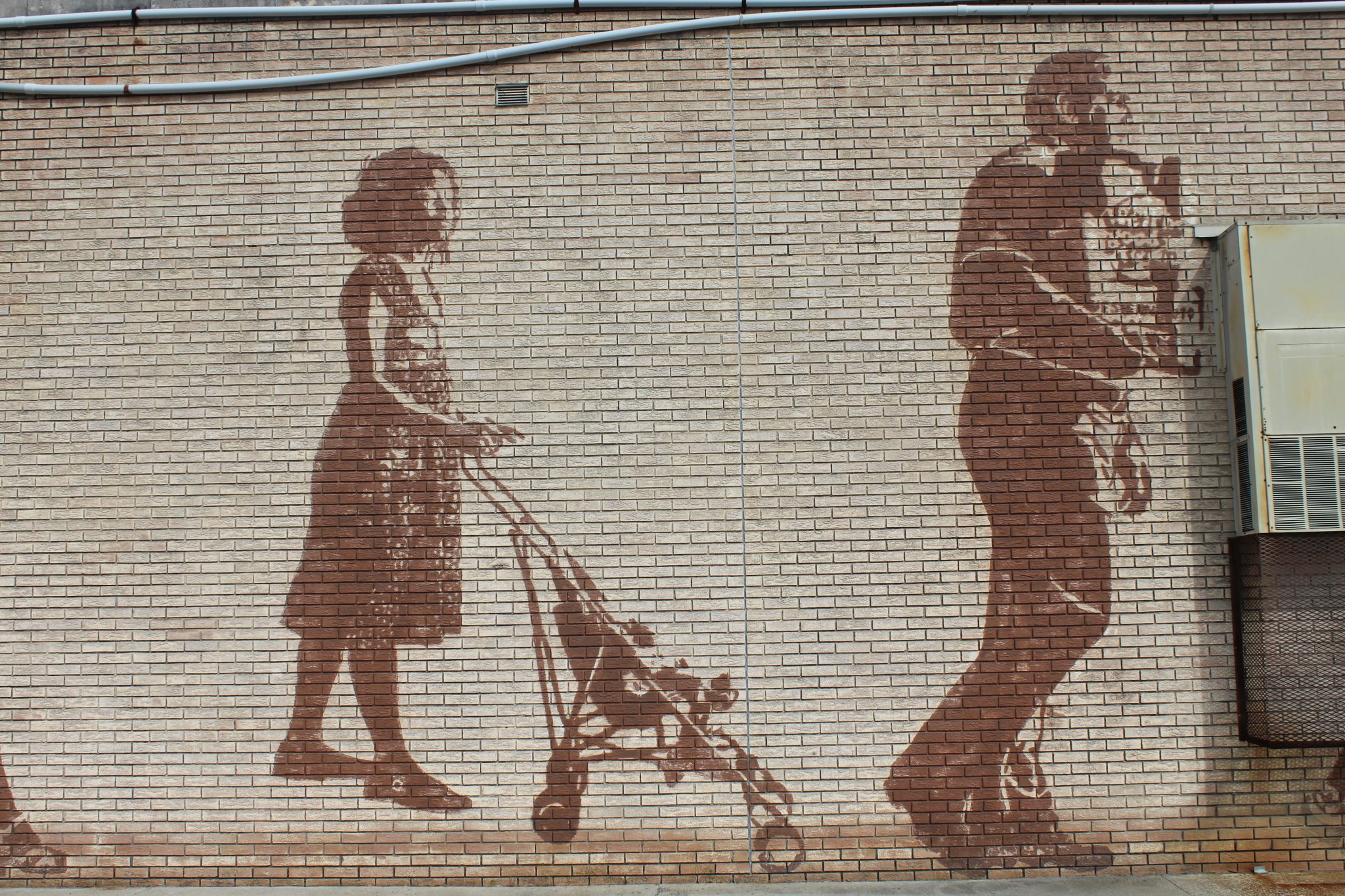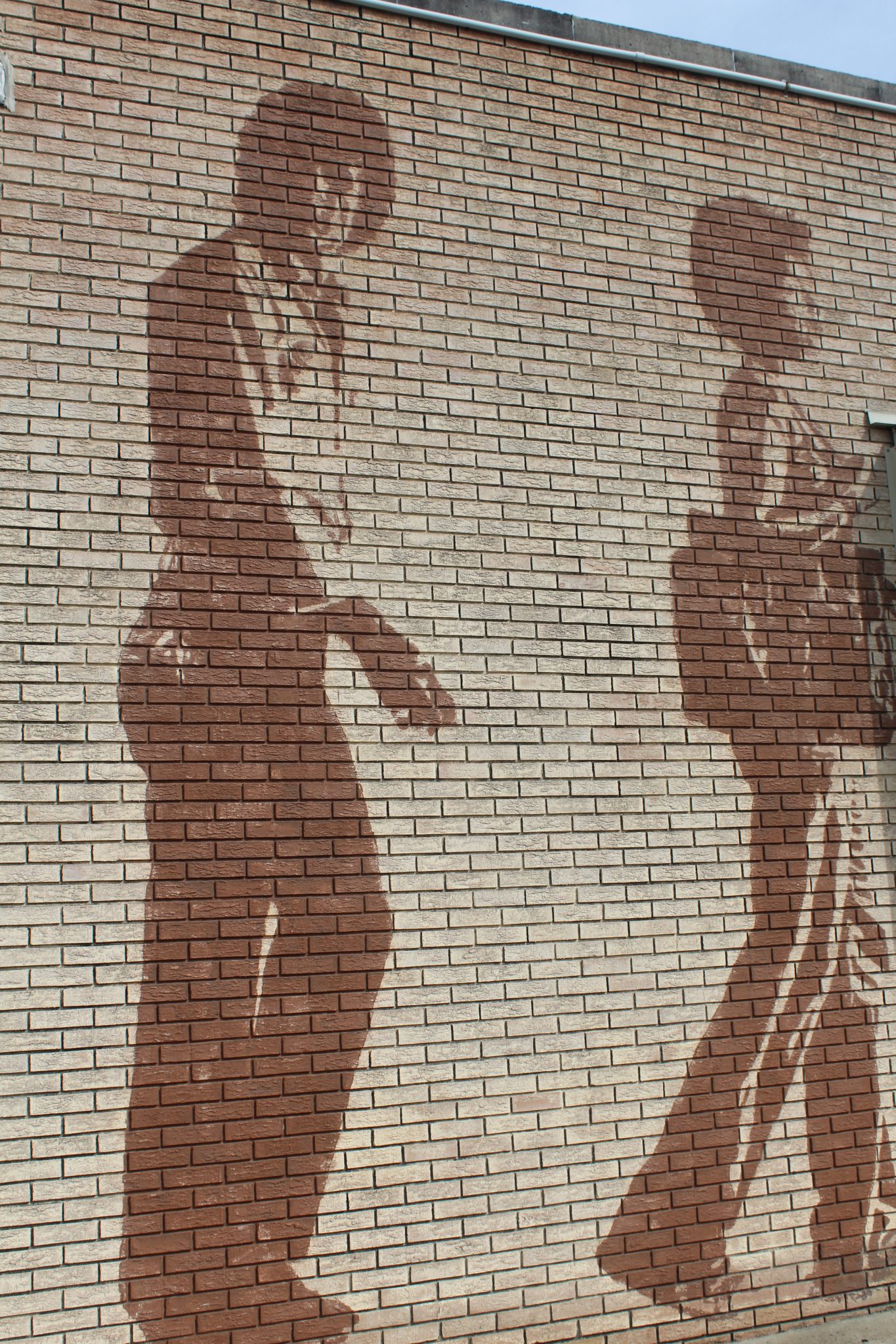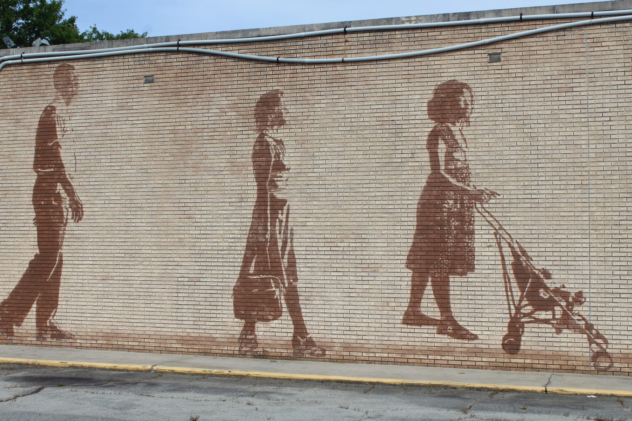 This large-scale mural is located on the side of the Midland's Children's Adoption Center off Two-Notch Rd. Waldrop painted figures of people on the side of the building to replicate all different types of people who have the opportunity to adopt. It is very moving, especially bring on such a large scale.