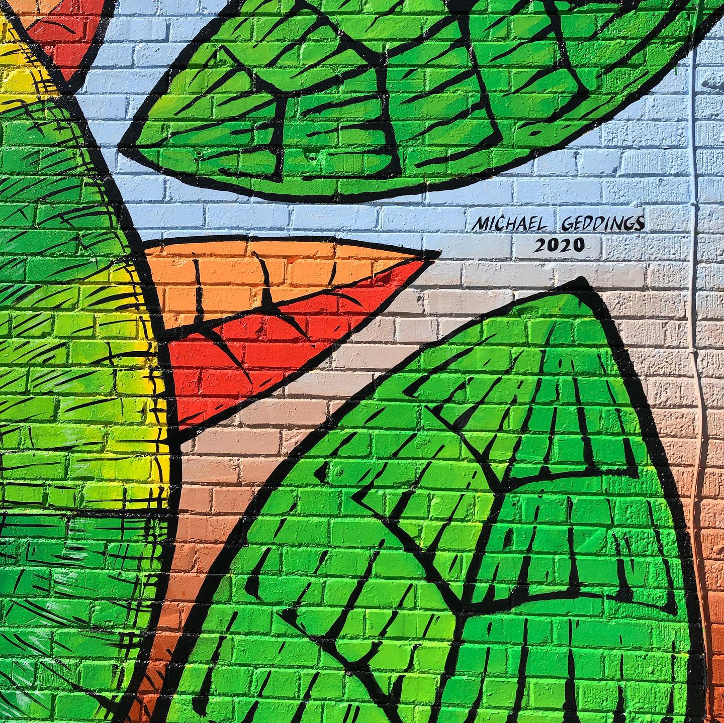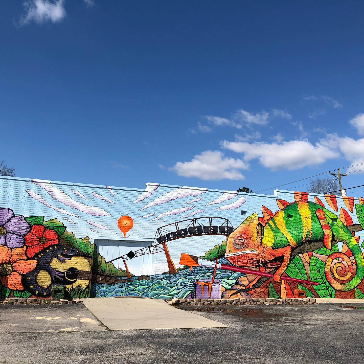 Cayce put out another search for artists to paint murals to continue brighten up the community. They found Michael Geddings, a very talented local artist to paint this on State Street.