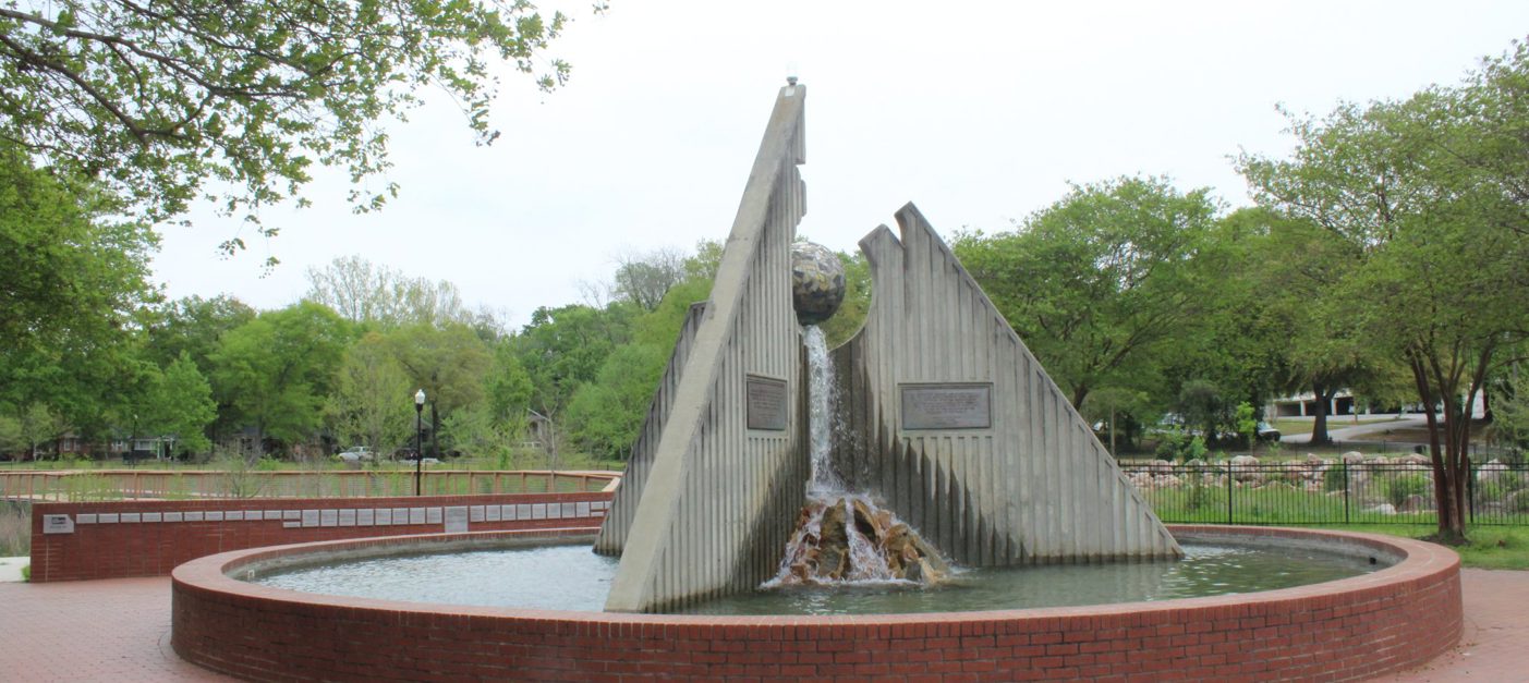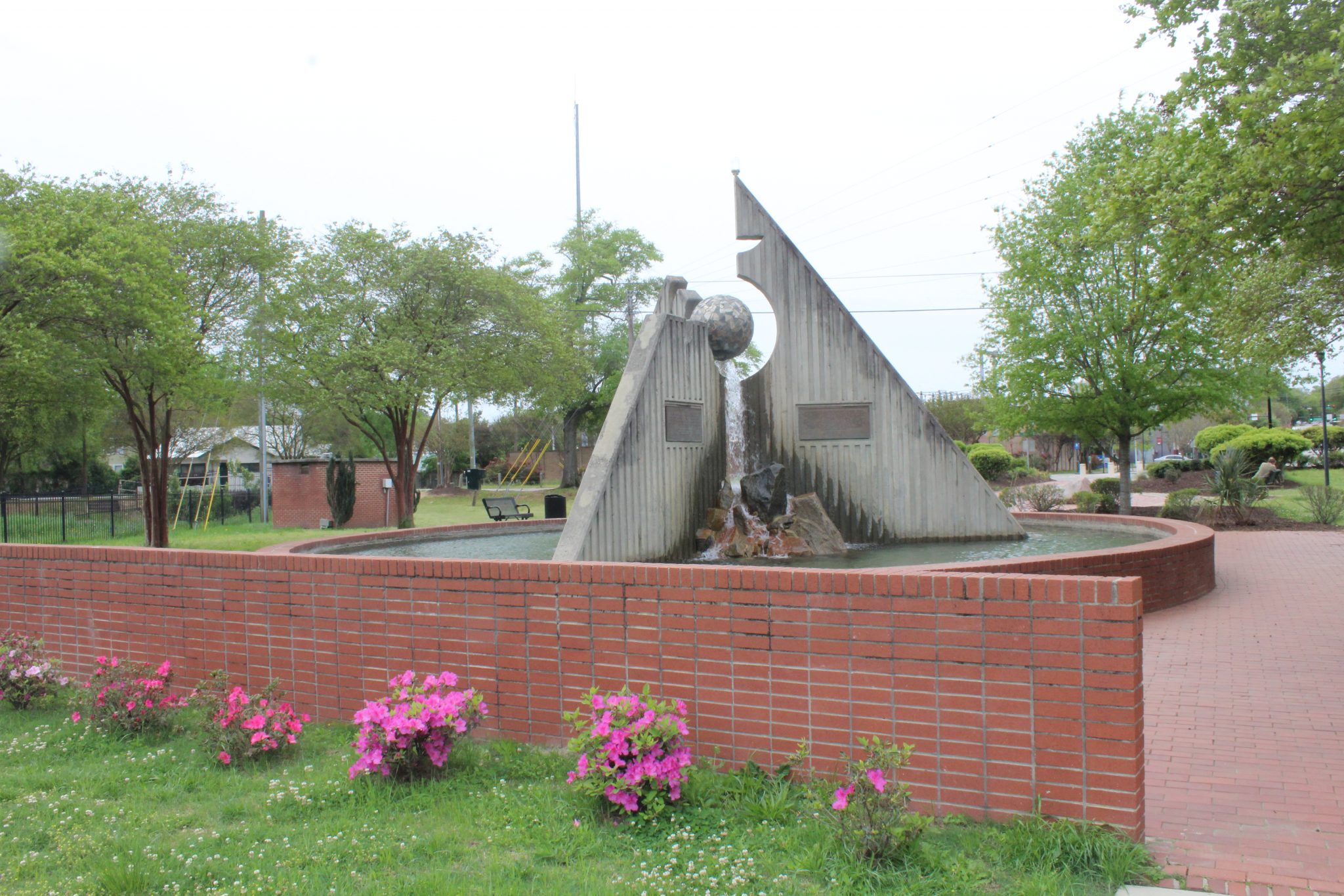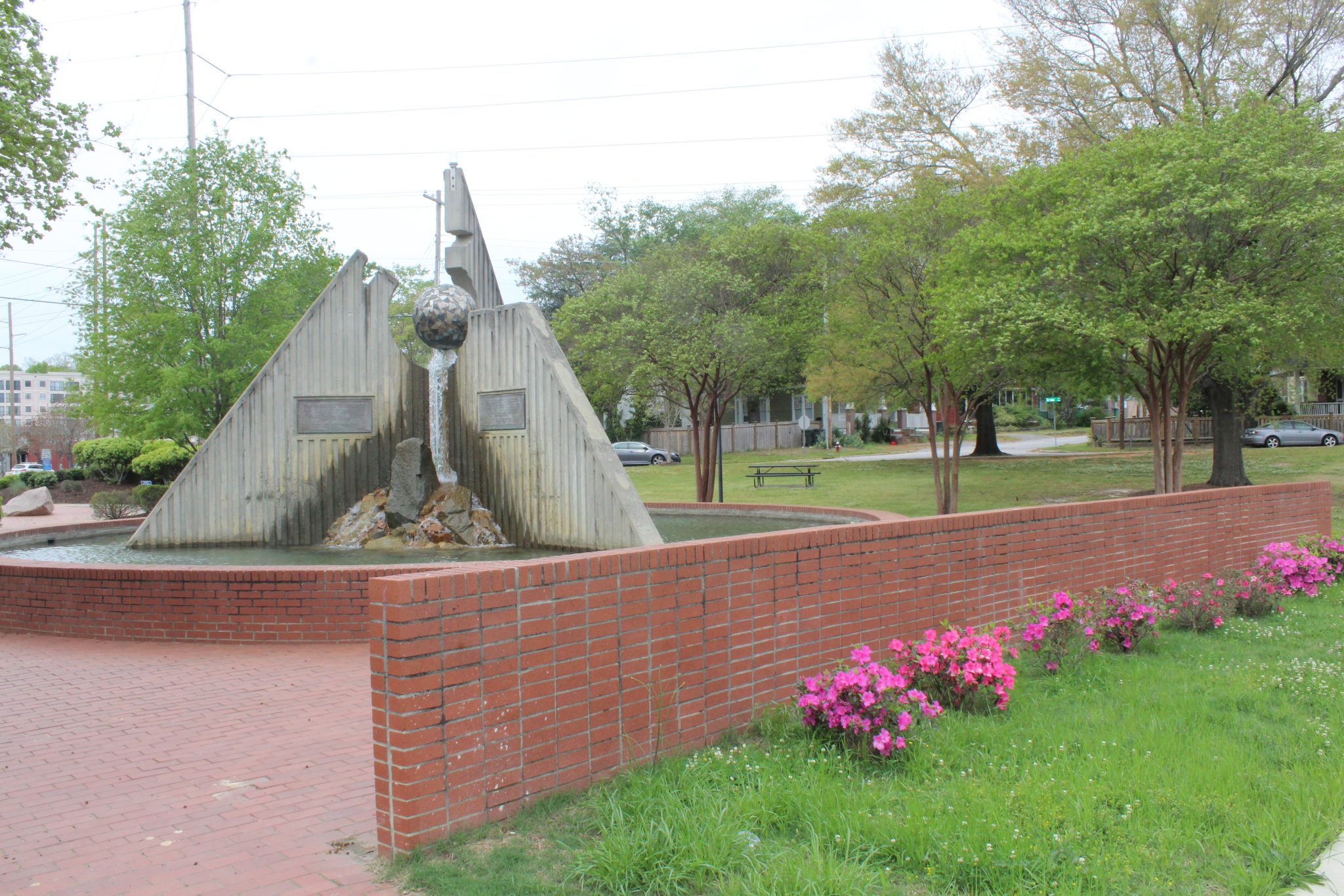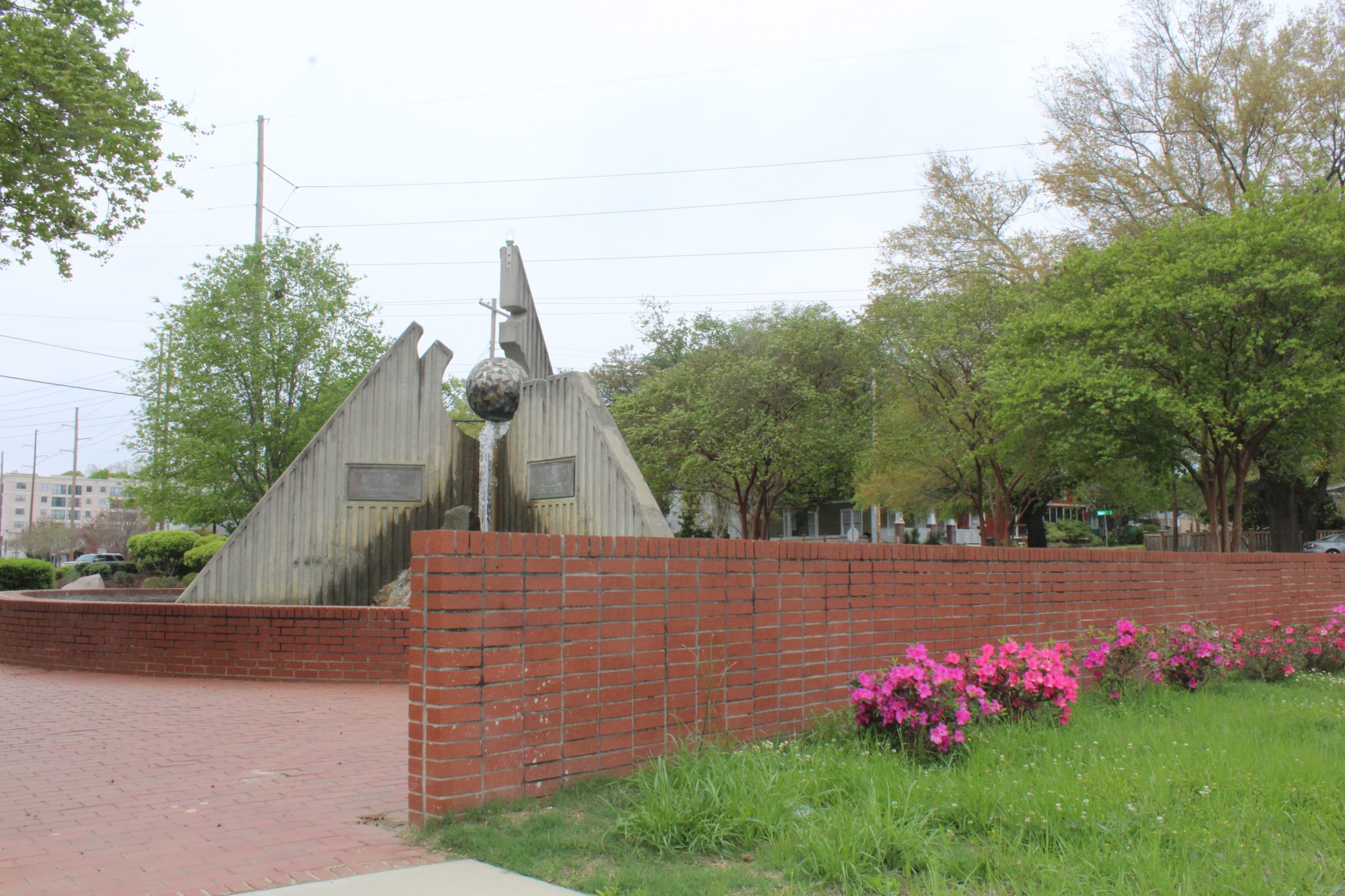 A stone carved with part of 'I have a dream' sits near a fountain with other famous MLK quotes in a plaza dedicated to the famous civil rights leader. A historic plaque is found a few blocks away.